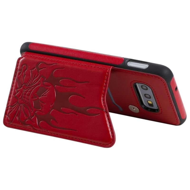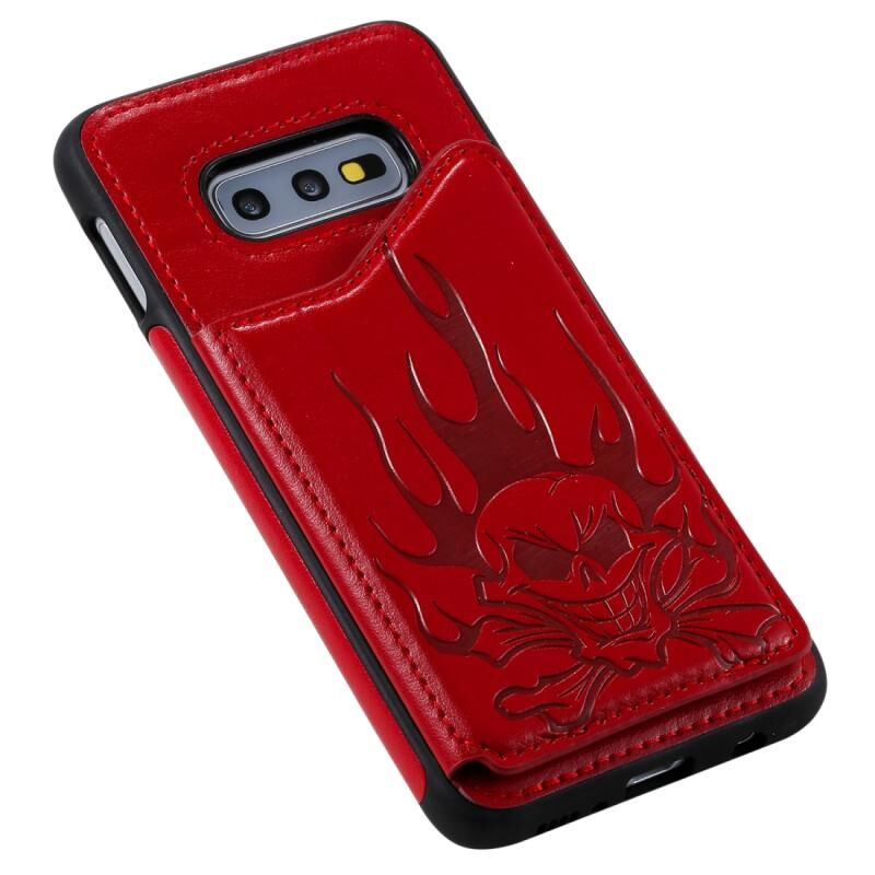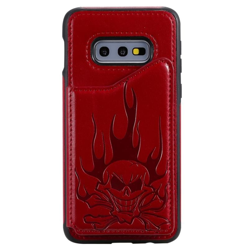 Θήκη προστασίας με ανάγλυφο σχέδιο κρανίου, αντικραδασμική για Galaxy S10e, με βάση στήριξης, θήκες καρτών και πορτοφόλι (Γκρι)