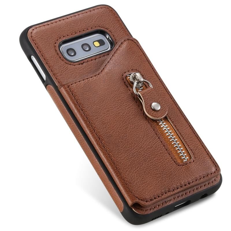 Για Galaxy S10e Αμιγές χρώμα διπλό πόρπη φερμουάρ Shockproof προστατευτική θήκη (καφέ)