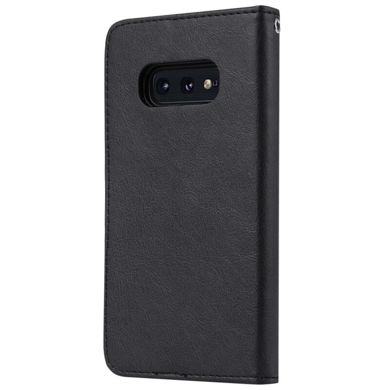 Για Galaxy S10e Αμιγές χρώμα οριζόντια Flip προστατευτική θήκη με θήκη & υποδοχές για κάρτες & πορτοφόλι & πλαίσιο φωτογραφιών & κορδόνι (μαύρο)