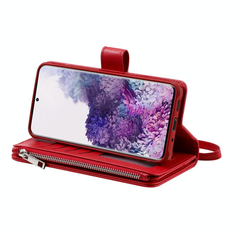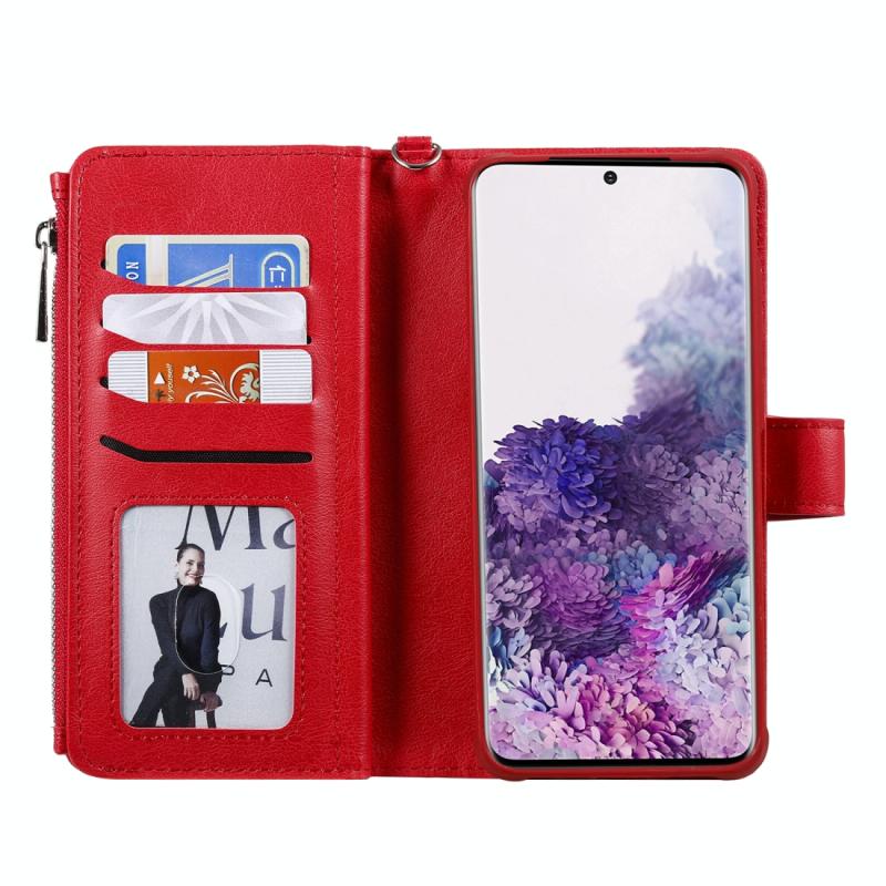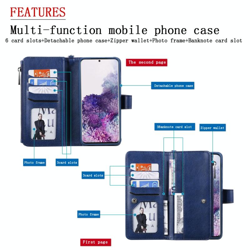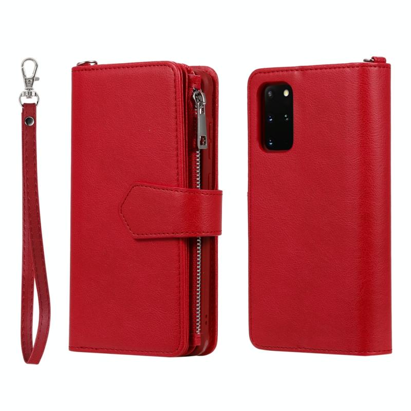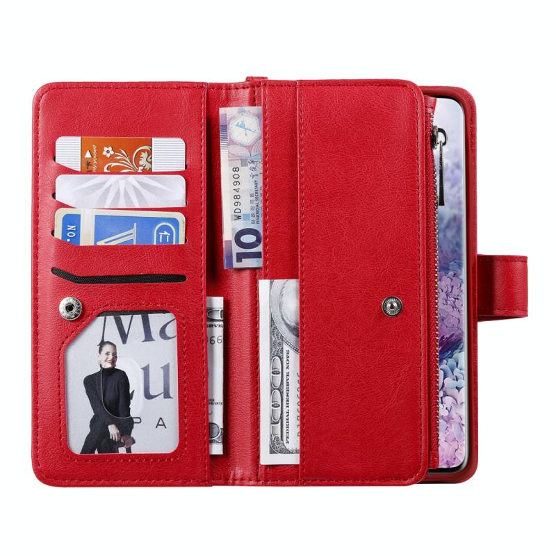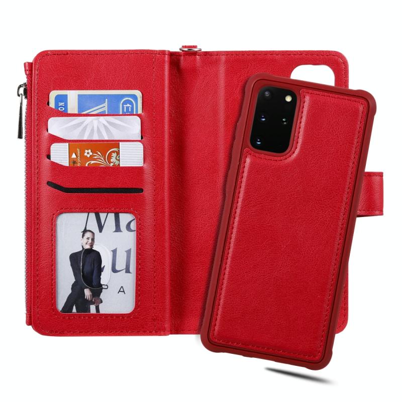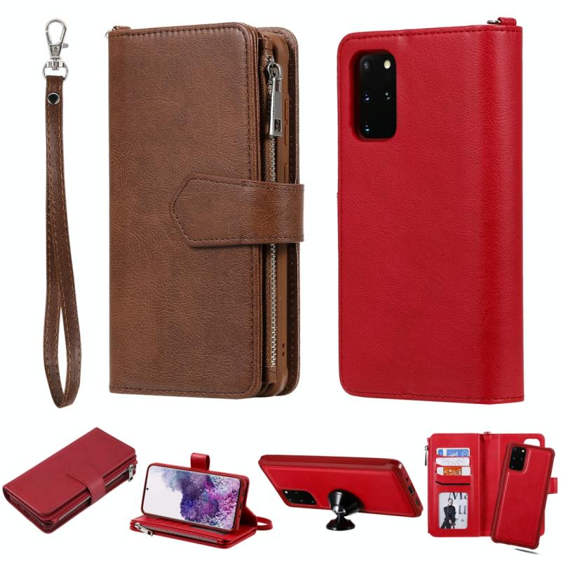 Για Galaxy S20+ 2 σε 1 Προστατευτική θήκη με μονόχρωμο φερμουάρ, ανθεκτική σε κρούσεις με υποδοχές καρτών & βάση στήριξης & θήκη φωτογραφιών & λειτουργία πορτοφολιού (Χρυσό ροζ)