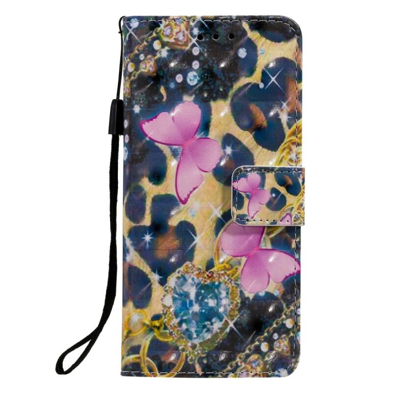 Θήκη δέρματος οριζόντιας αναδίπλωσης με σχέδιο 3D για Galaxy S20 με βάση, θήκη καρτών & λουρί (Ροζ Πεταλούδες)