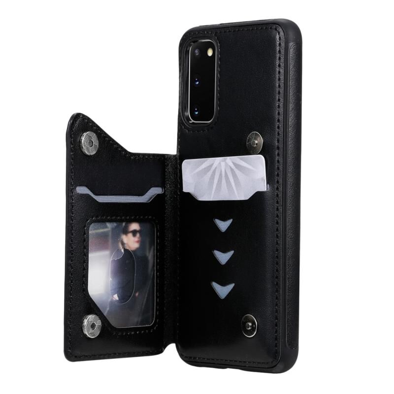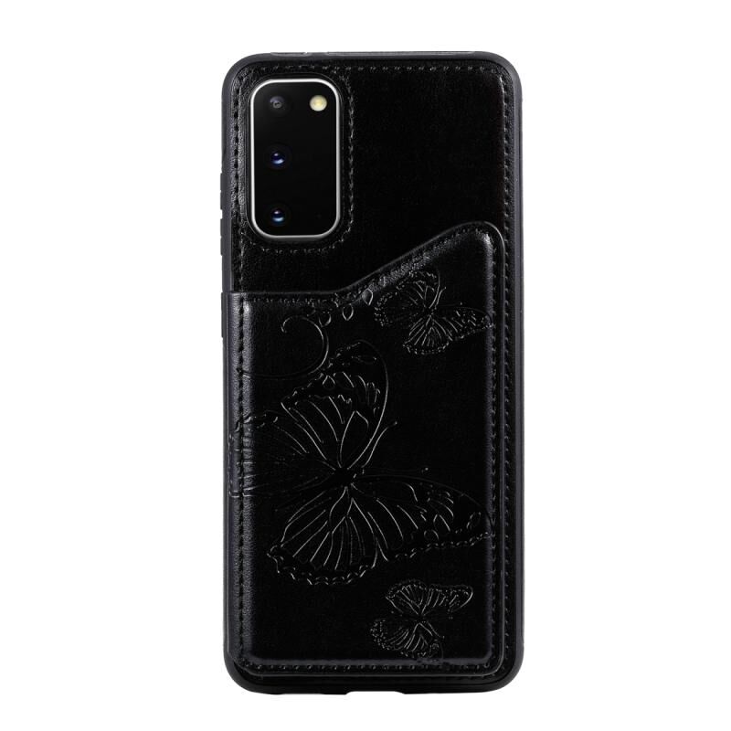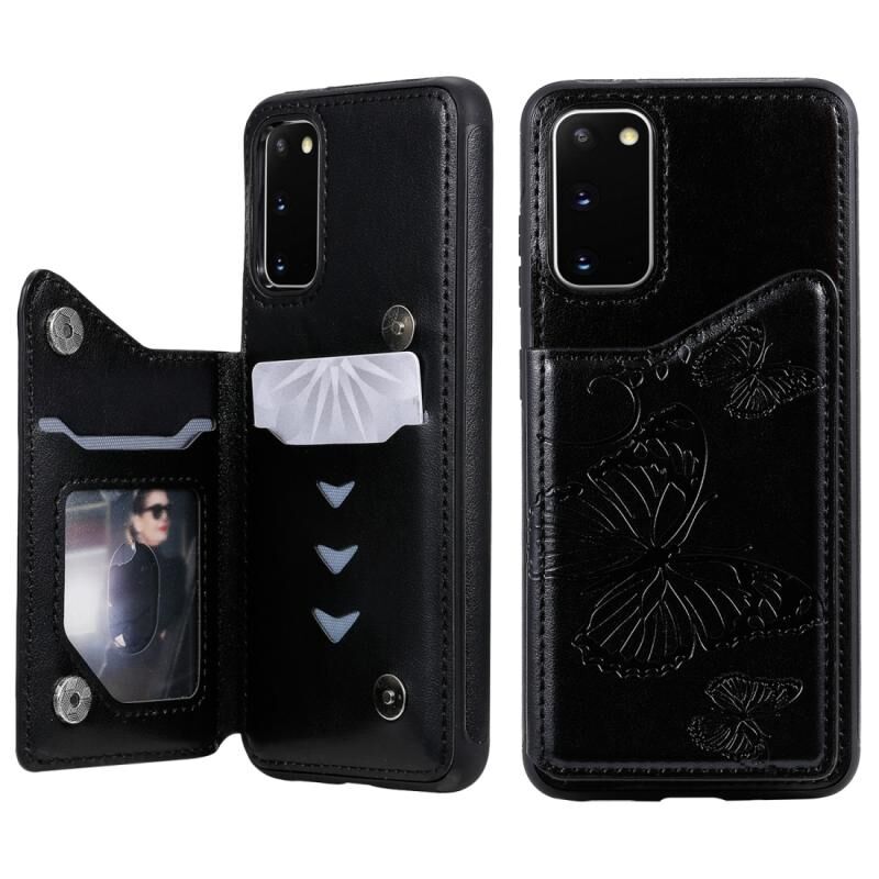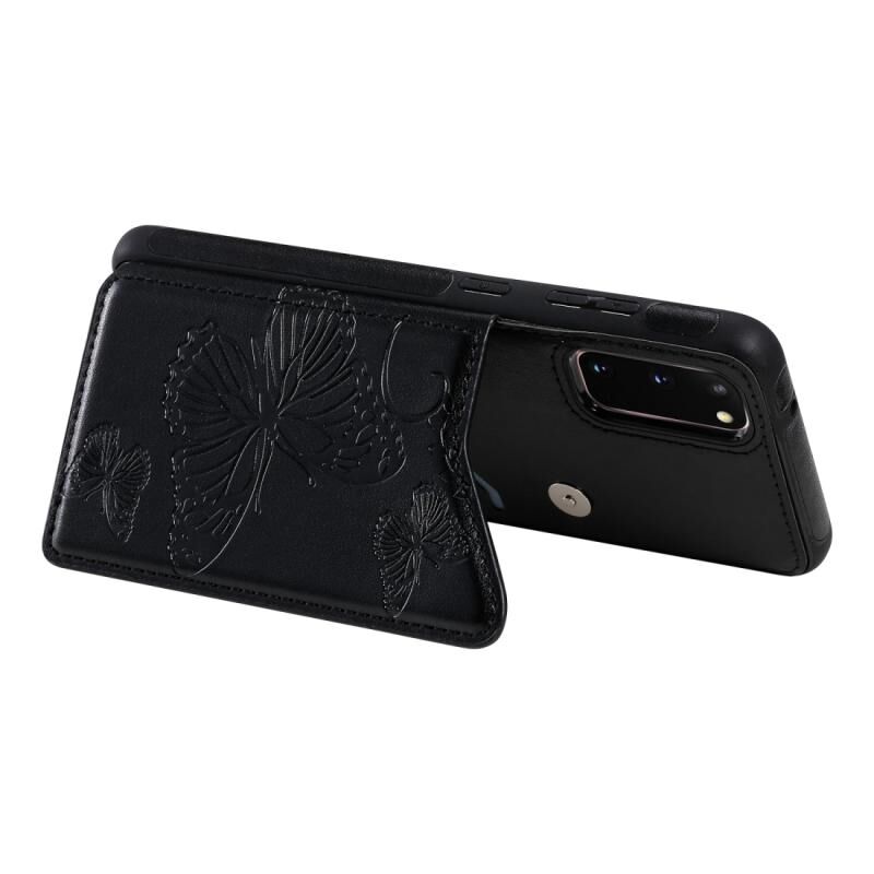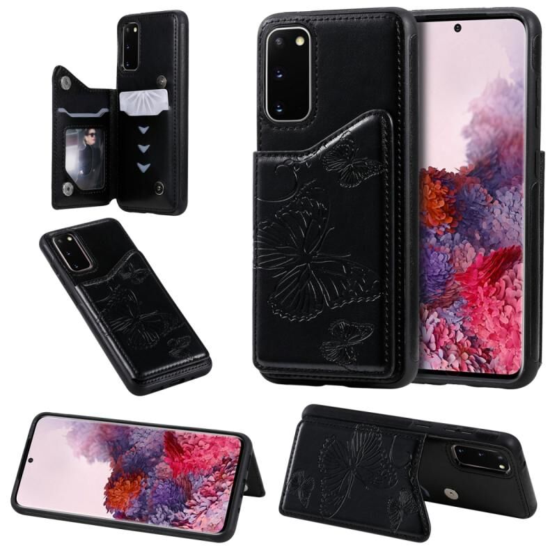 Θήκη προστασίας με ανάγλυφο σχέδιο πεταλούδας για Galaxy S20, ανθεκτική σε κρούσεις, με βάση στήριξης, θήκες για κάρτες και κορνίζα φωτογραφιών (Μαύρο)