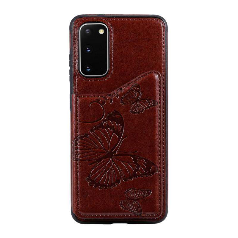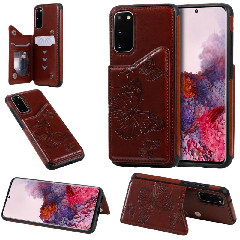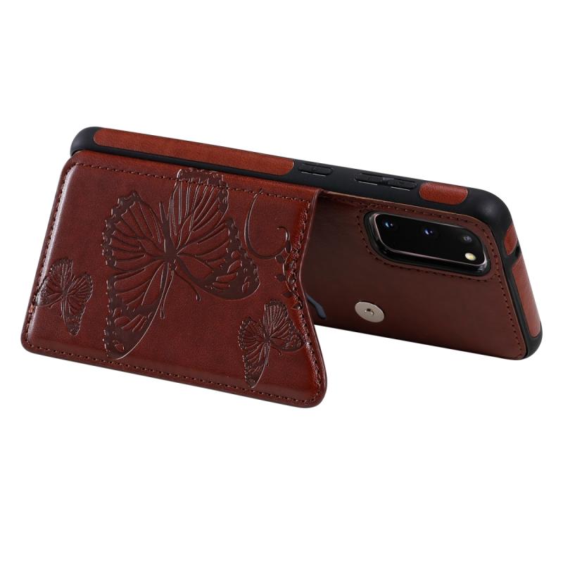 Θήκη προστασίας με ανάγλυφο σχέδιο πεταλούδας για Galaxy S20, ανθεκτική σε κρούσεις, με βάση στήριξης, θήκες για κάρτες & κορνίζα φωτογραφιών (Καφέ)