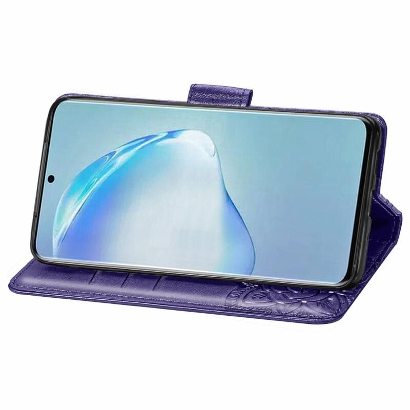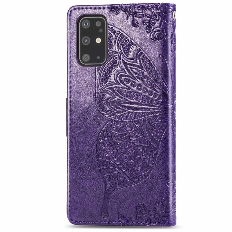 Θήκη δέρματος οριζόντιας αναδίπλωσης για Galaxy S20+ με ανάγλυφο σχέδιο πεταλούδας και λουλουδιών, με βάση στήριξης / υποδοχή κάρτας / πορτοφόλι / κορδόνι (Μαύρο)