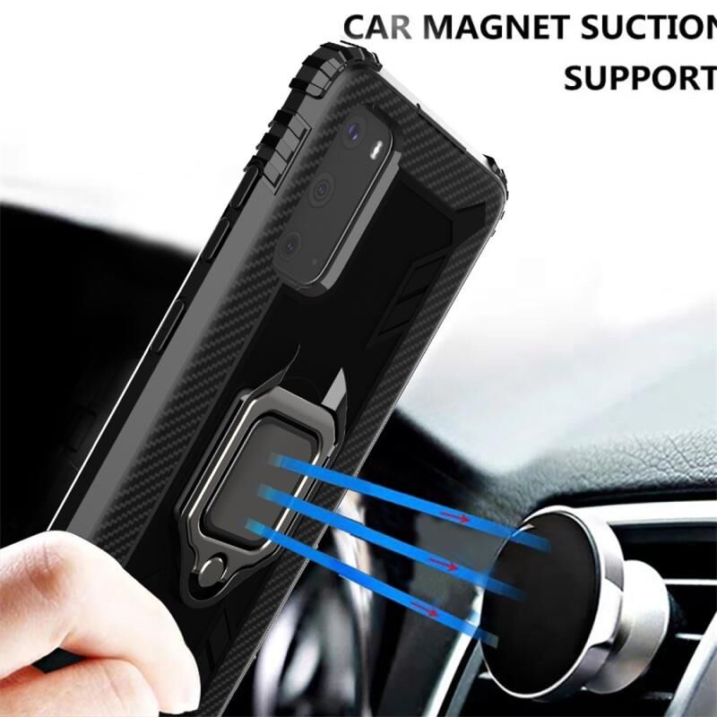 Για Galaxy S20+ Προστατευτική θήκη από ανθρακονήματα με περιστρεφόμενη θήκη δακτυλίου 360 μοιρών (Μαύρο)