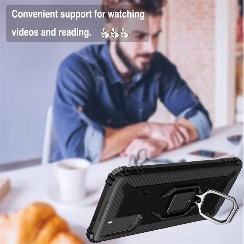 Για Galaxy S20 Carbon Fiber Προστατευτική θήκη με 360 μοίρες περιστρεφόμενη θήκη δακτυλίου (Μαύρο)