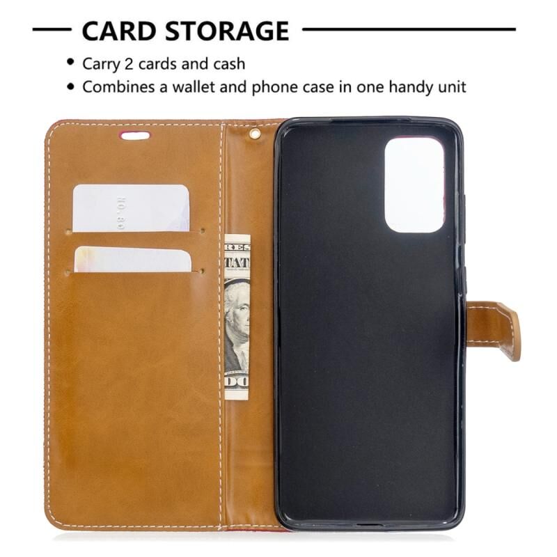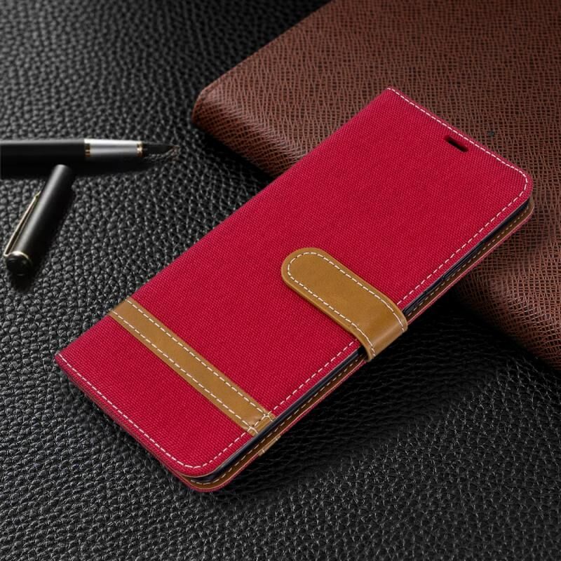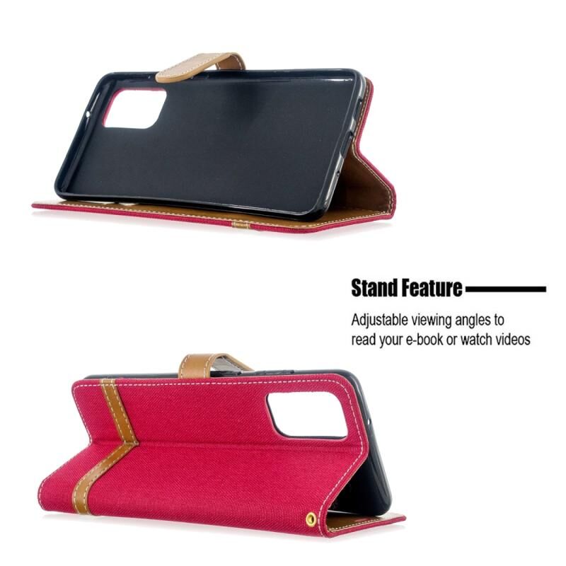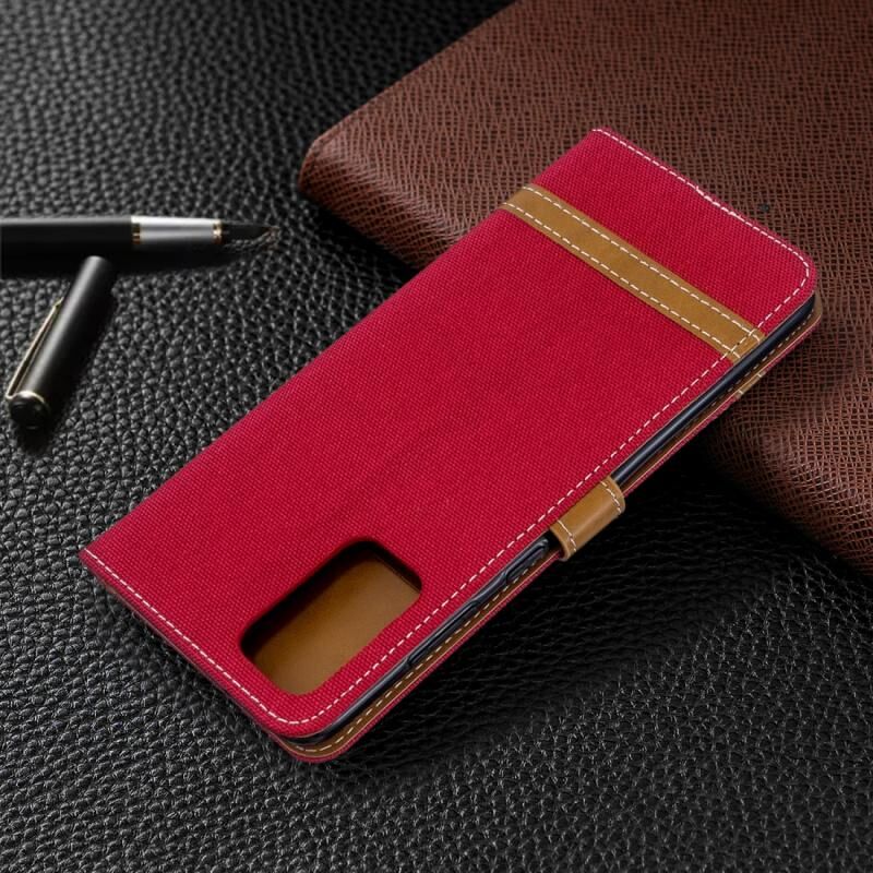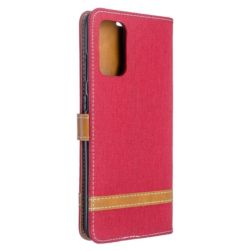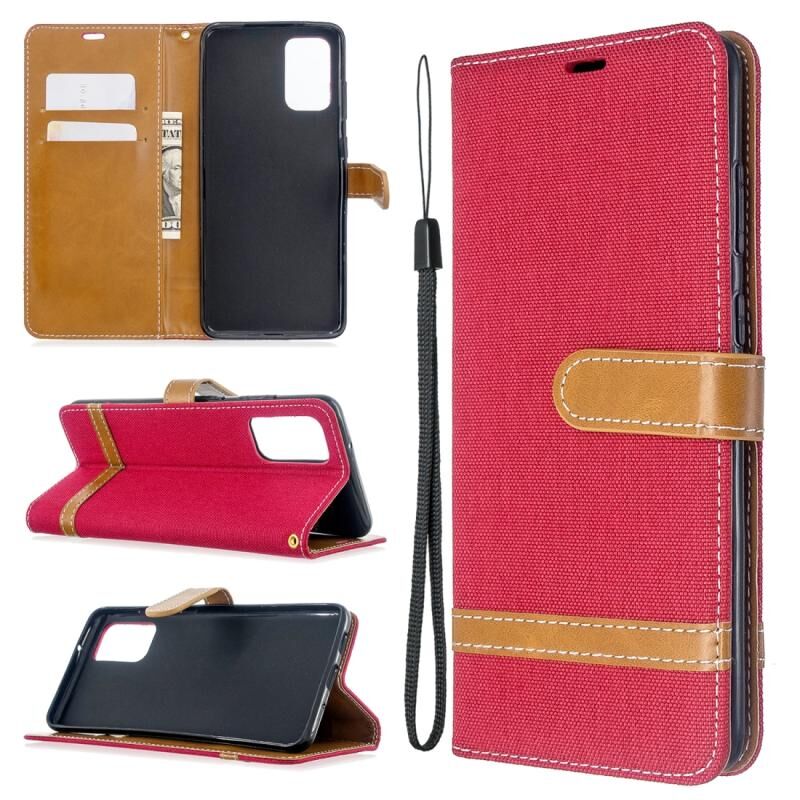 Για Galaxy S20+ Χρώμα που ταιριάζει Denim υφή οριζόντια Flip PU δερμάτινη θήκη με θήκη & υποδοχές για κάρτες & πορτοφόλι & κορδόνι (κόκκινο)