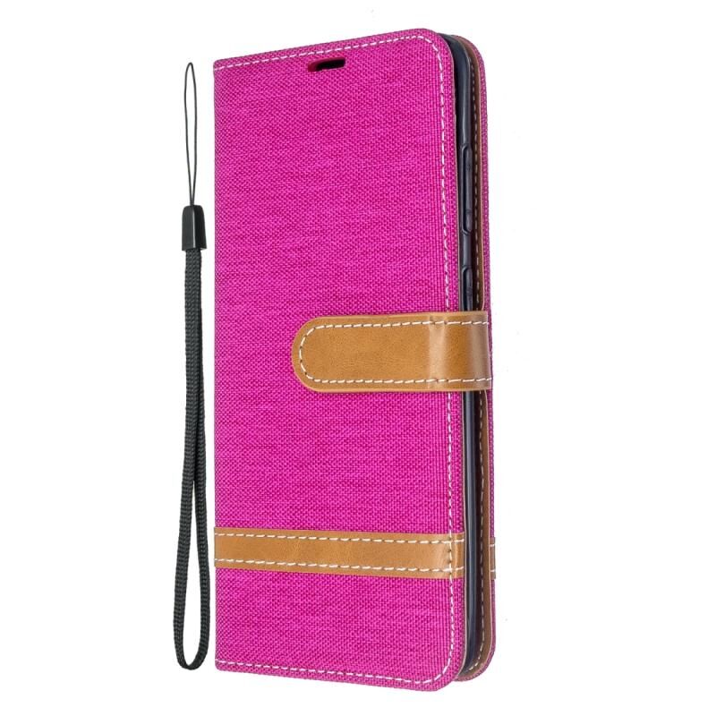 Για το Galaxy S20 Χρώμα ταιριάζει Denim υφή οριζόντια Flip PU δέρμα υπόθεση με θήκη & υποδοχές για κάρτες & πορτοφόλι & Lanyard (Ροζέ κόκκινο)