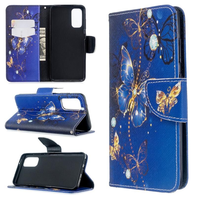 Θήκη δέρματος οριζόντιας αναδίπλωσης με σχέδιο πολύχρωμης ζωγραφικής για Galaxy S20 με βάση & υποδοχές καρτών & πορτοφόλι (Μωβ Πεταλούδα)