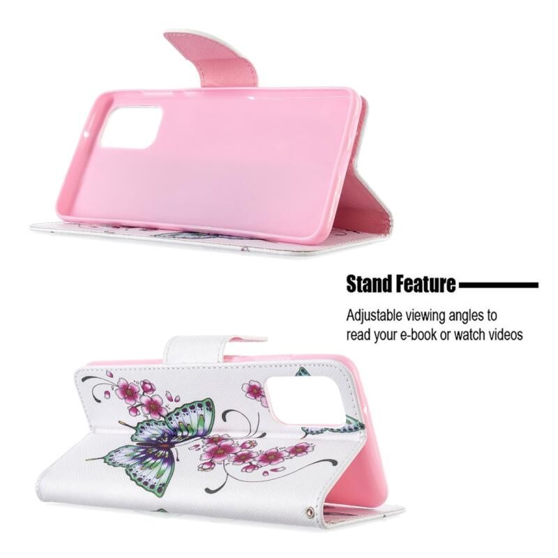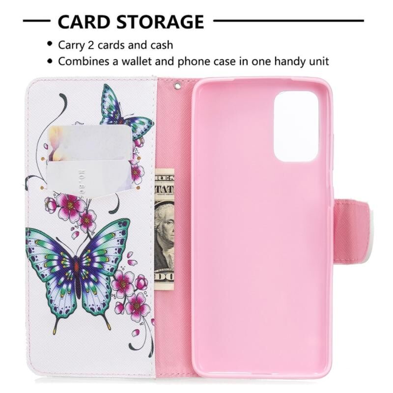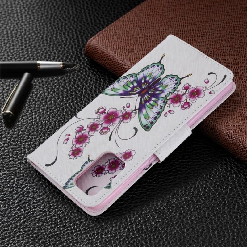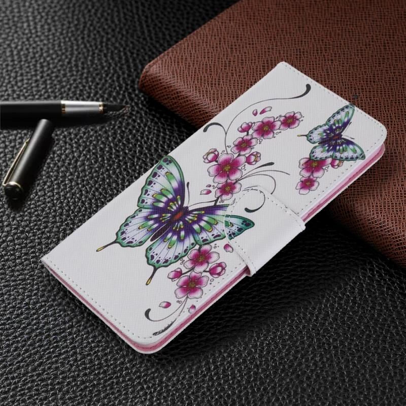 Θήκη δέρματος οριζόντιας αναδίπλωσης με σχέδιο πολύχρωμης ζωγραφικής για Galaxy S20+ με βάση & υποδοχές καρτών & πορτοφόλι (Δύο Πεταλούδες)