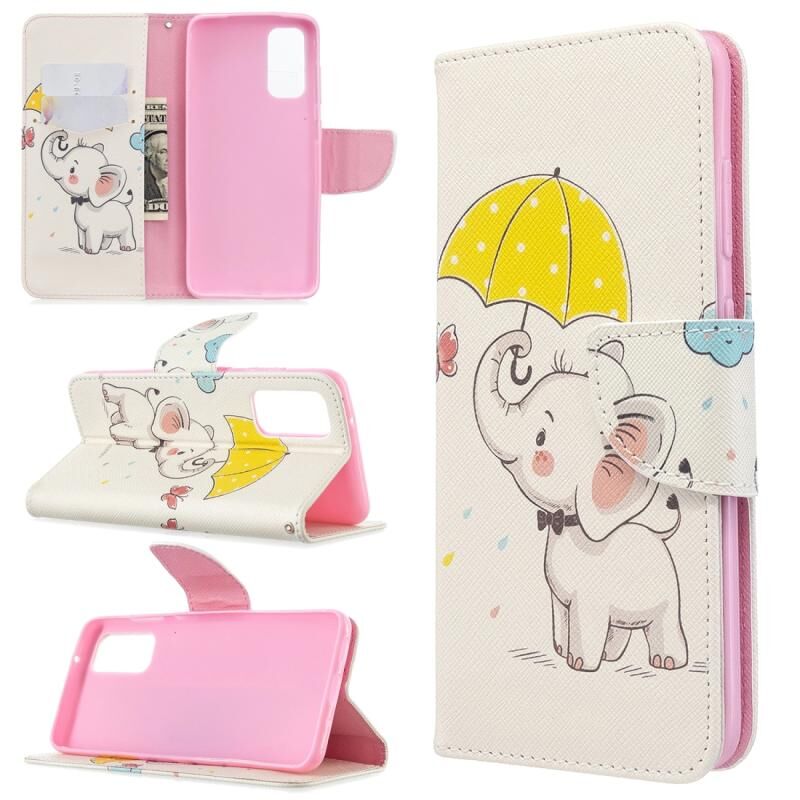 Θήκη δέρματος οριζόντιας αναδίπλωσης με σχέδιο πολύχρωμης ζωγραφικής για Galaxy S20 με βάση & υποδοχές καρτών & πορτοφόλι (Ομπρέλα Ελέφαντας)
