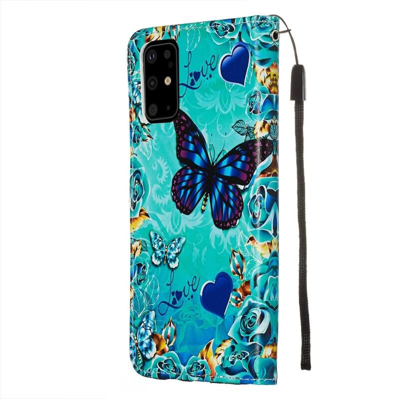 Θήκη δέρματος οριζόντιας αναδίπλωσης για Galaxy S20+ με έγχρωμο σχέδιο, απλή ύφανση, θήκη, υποδοχή κάρτας, πορτοφόλι & λουρί (Χαριτωμένη Πεταλούδα)