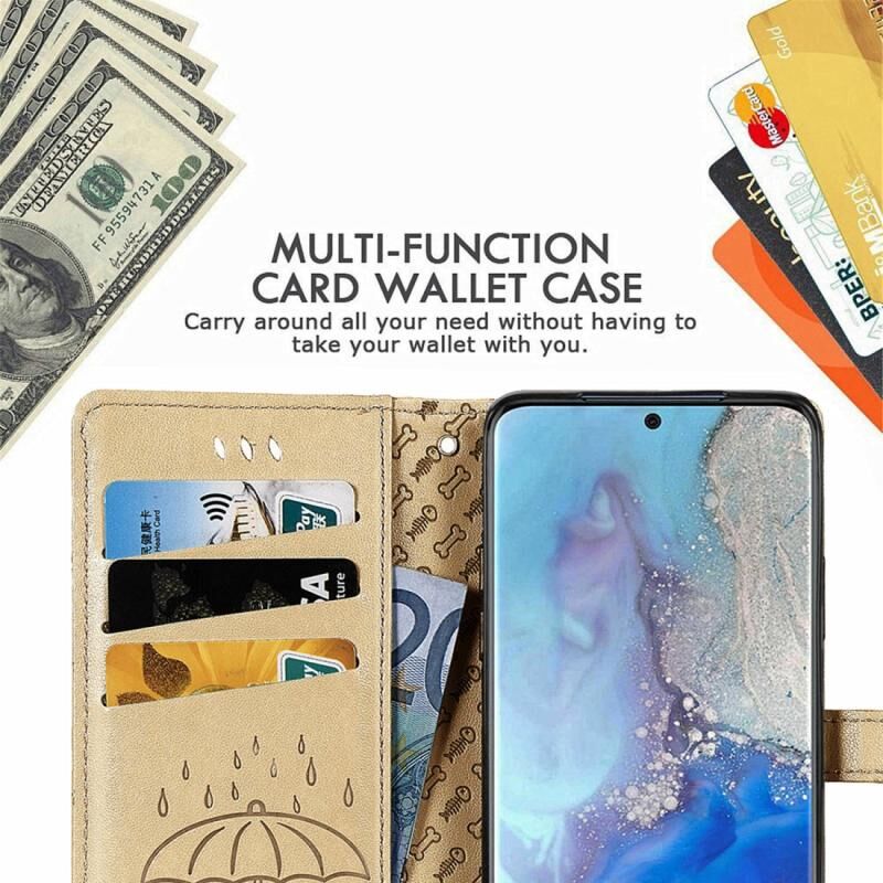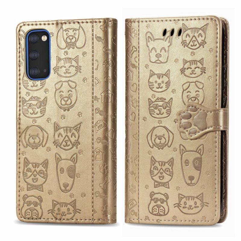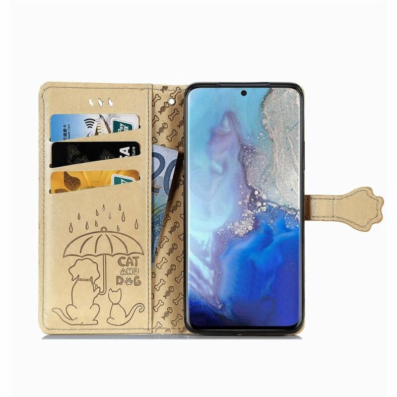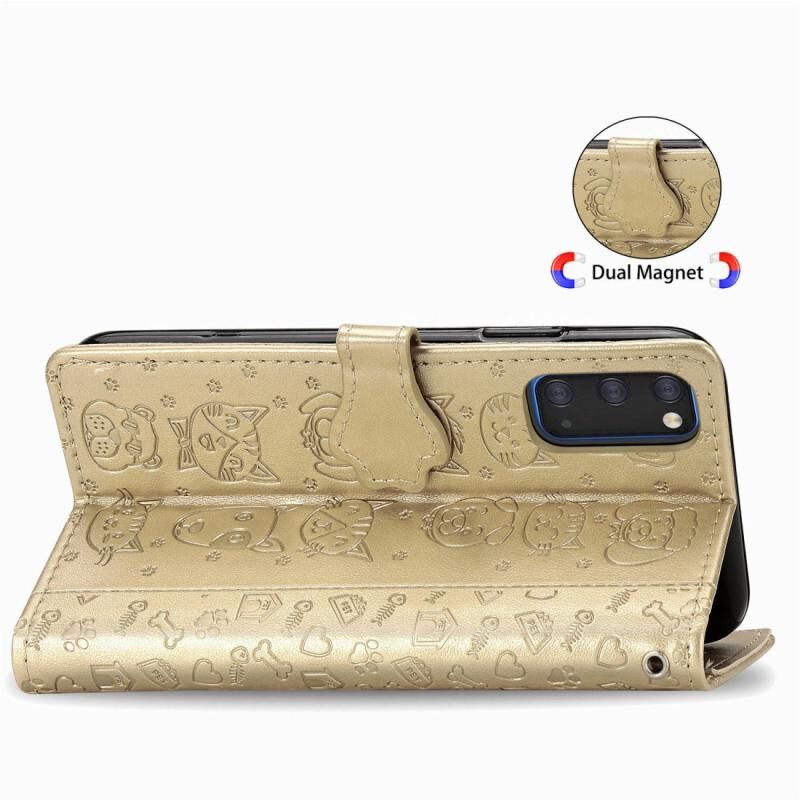 Θήκη δέρματος οριζόντιας αναδίπλωσης με ανάγλυφα σχέδια γατών και σκύλων για Galaxy S20, με βάση στήριξης / υποδοχή κάρτας / πορτοφόλι / κορδόνι (Χρυσός)