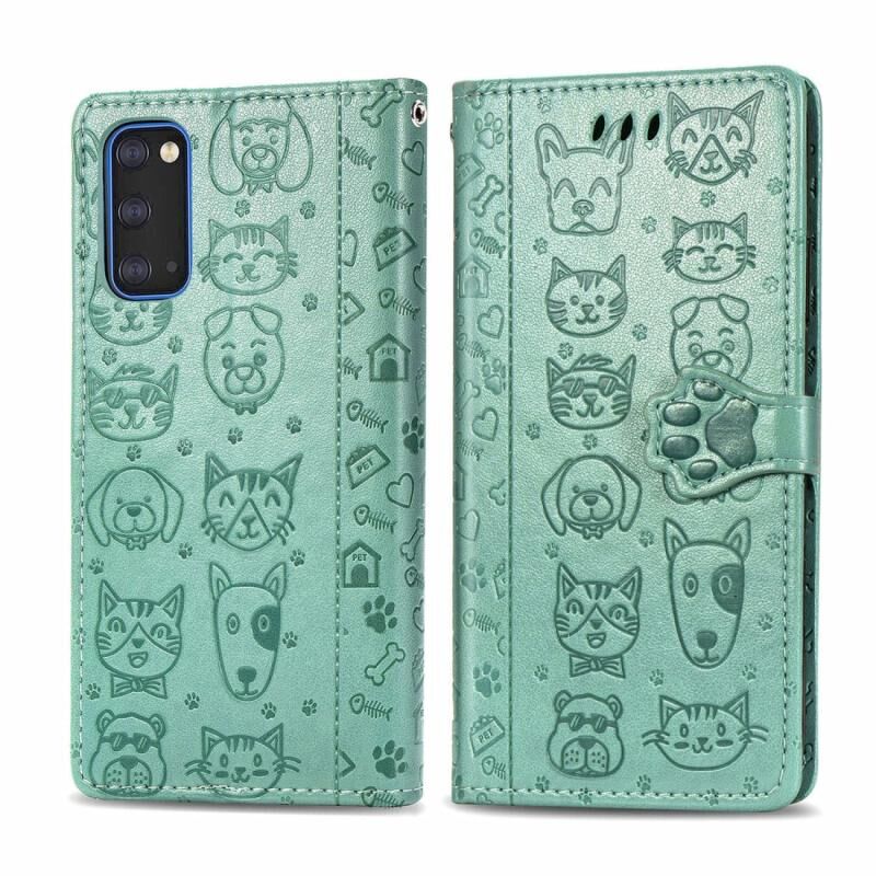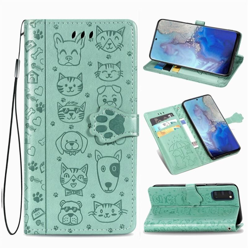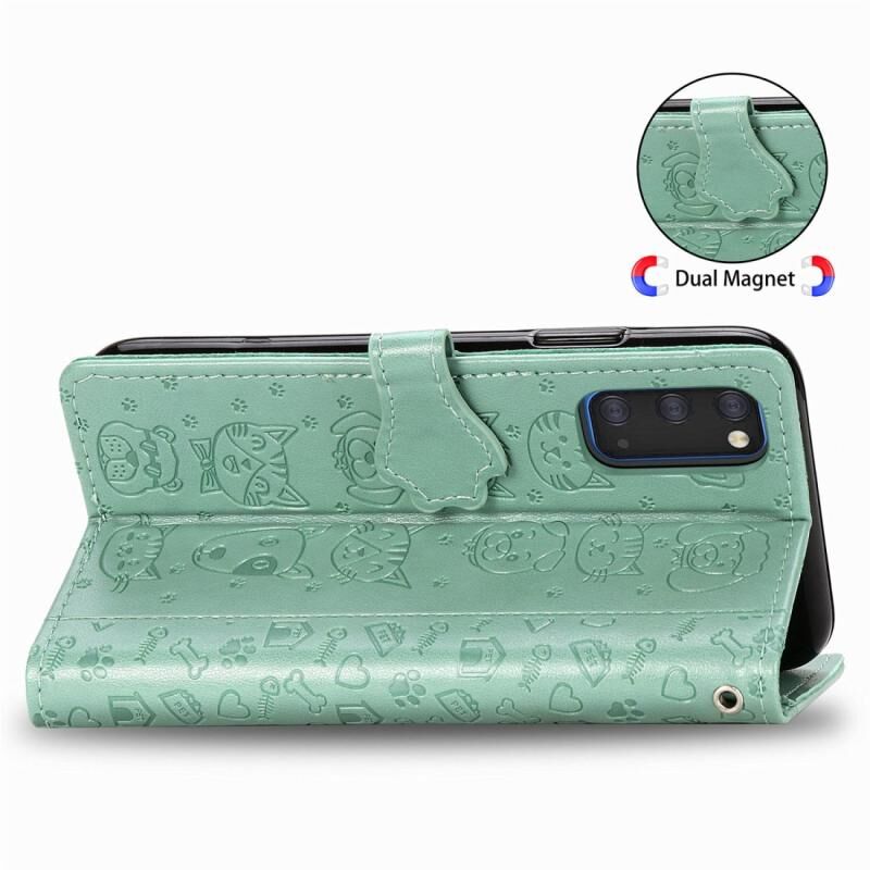 Θήκη δέρματος οριζόντιας αναδίπλωσης με ανάγλυφα σχέδια γατών και σκύλων για Galaxy S20, με βάση στήριξης / υποδοχή κάρτας / πορτοφόλι / κορδόνι (Γκρι)