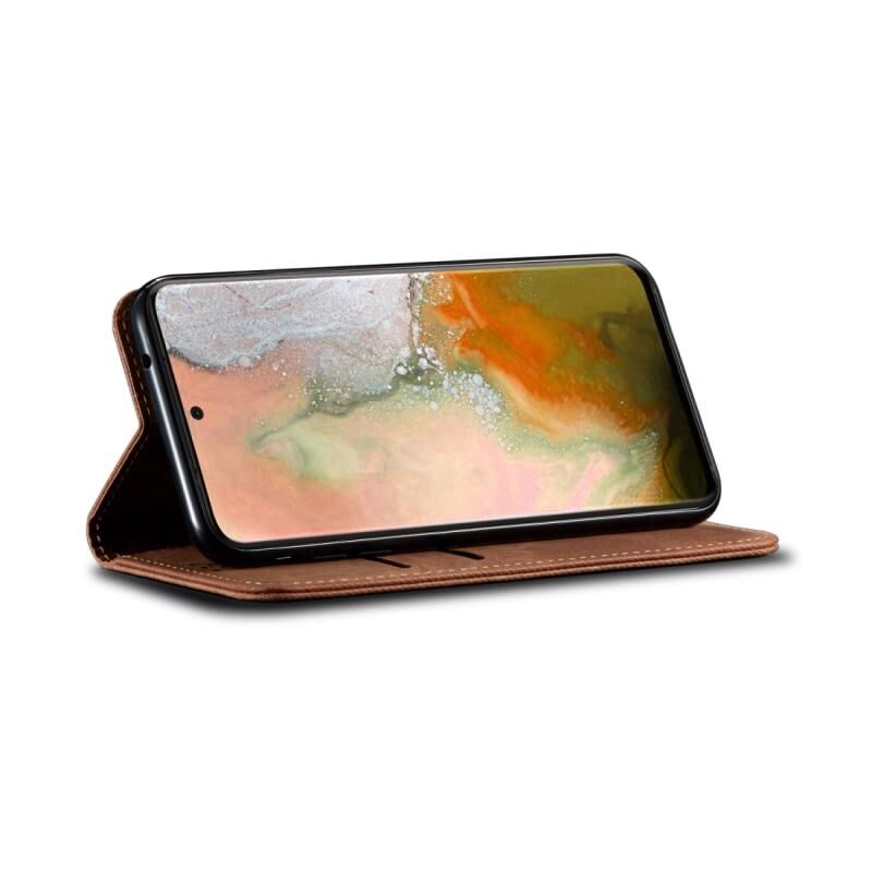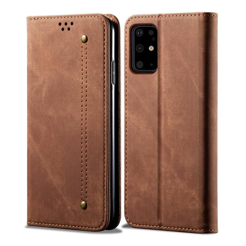 Για Galaxy S20 Denim υφή Casual Style Οριζόντια Flip δερμάτινη θήκη με θήκη & υποδοχές για κάρτες & πορτοφόλι (Καφέ)