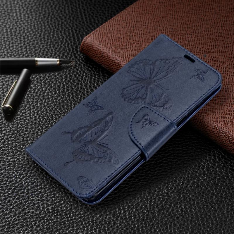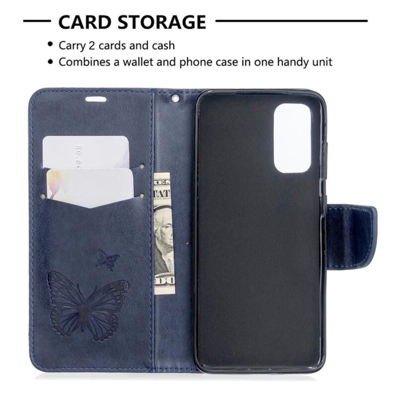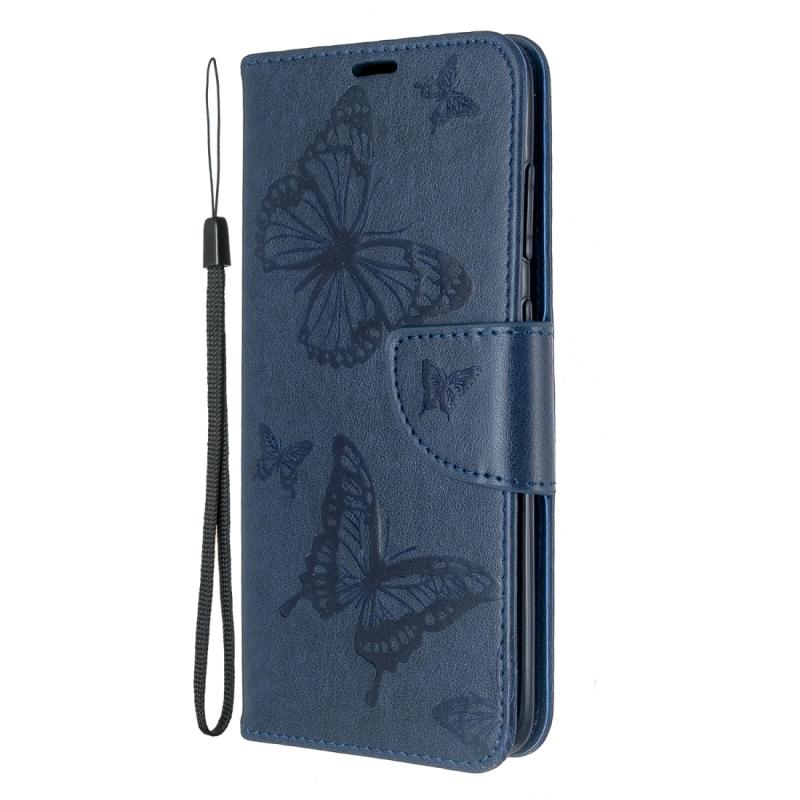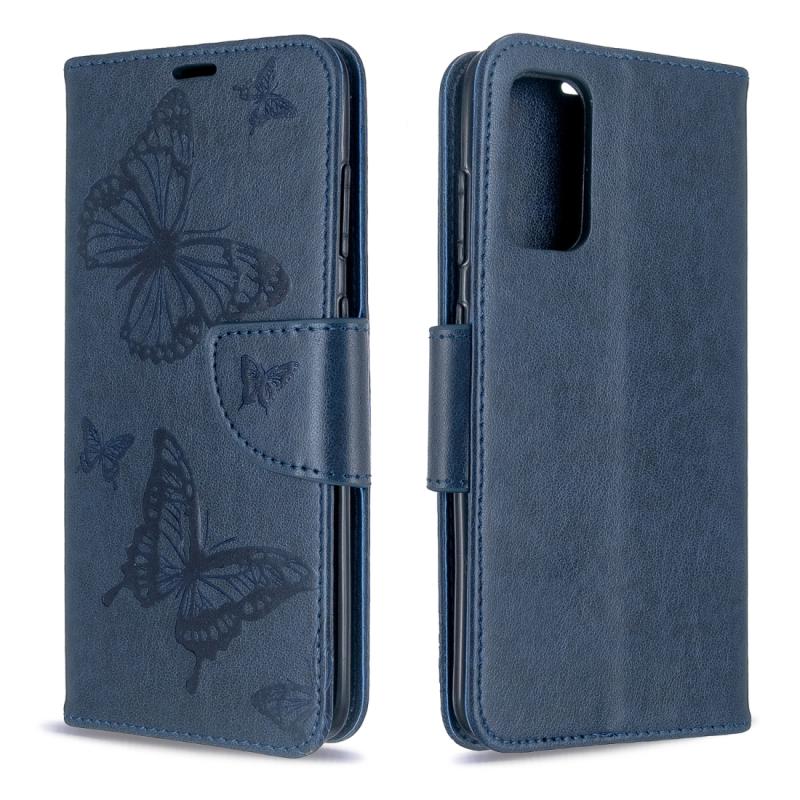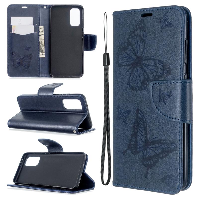 For Galaxy S20 Embossing Two Butterflies Pattern Horizontal Flip PU Leather Case with Holder & Card Slot & Wallet & Lanyard(Blue)
