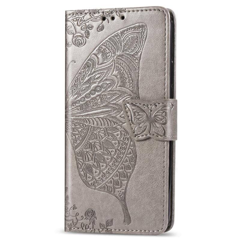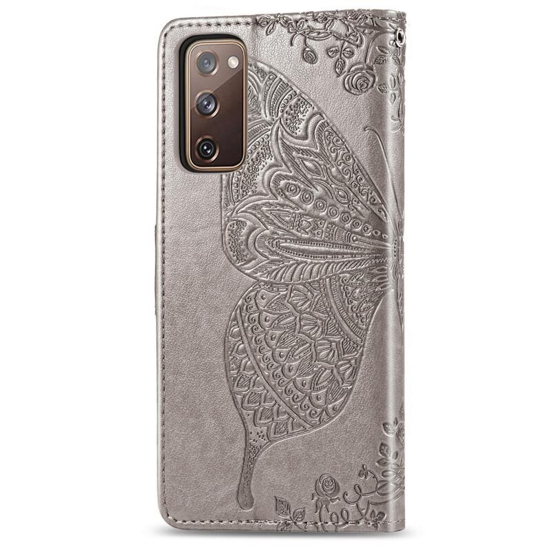Θήκη δέρματος οριζόντιας αναδίπλωσης με ανάγλυφο σχέδιο πεταλούδας και λουλουδιών για Galaxy S20 FE / S20 Lite, με βάση στήριξης / υποδοχή κάρτας / πορτοφόλι / κορδόνι (Γκρι)