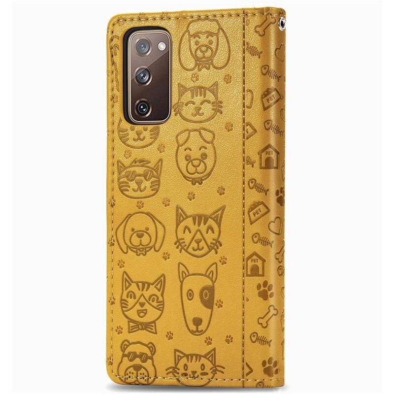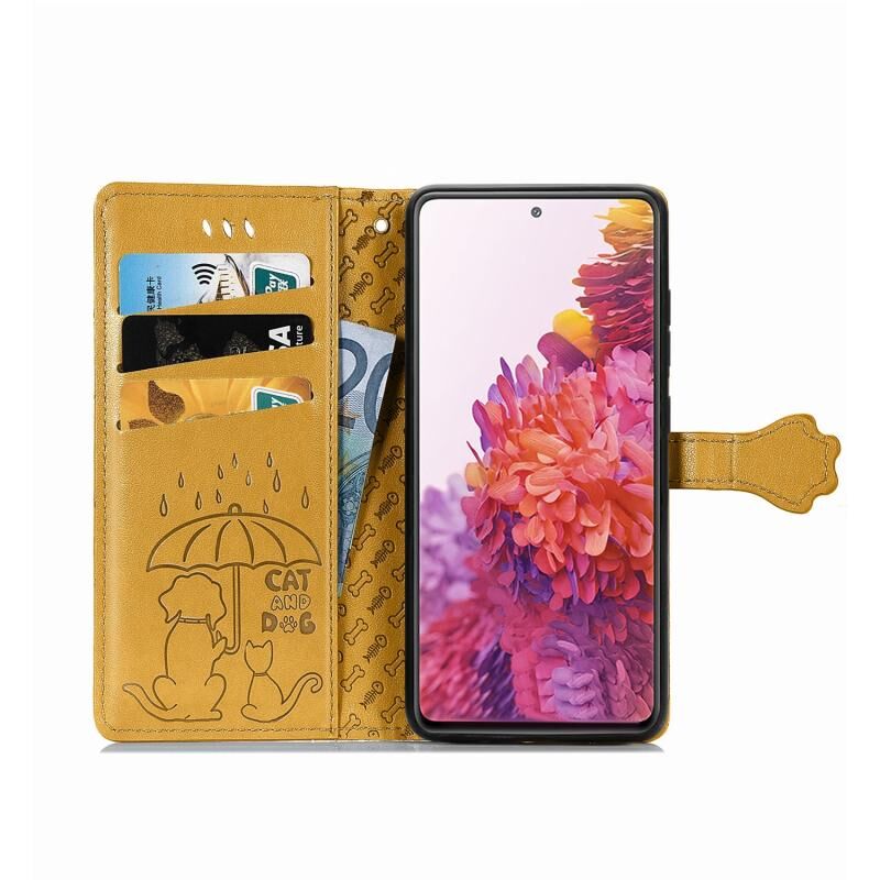 Για Galaxy S20 FE / S20 Lite Χαριτωμένη Θήκη Δέρματος Οριζόντιας Αναδίπλωσης με ανάγλυφα σχέδια Γάτας και Σκύλου με Στήριγμα / Θήκη Κάρτας / Πορτοφόλι / Λουρί (Ροζ)