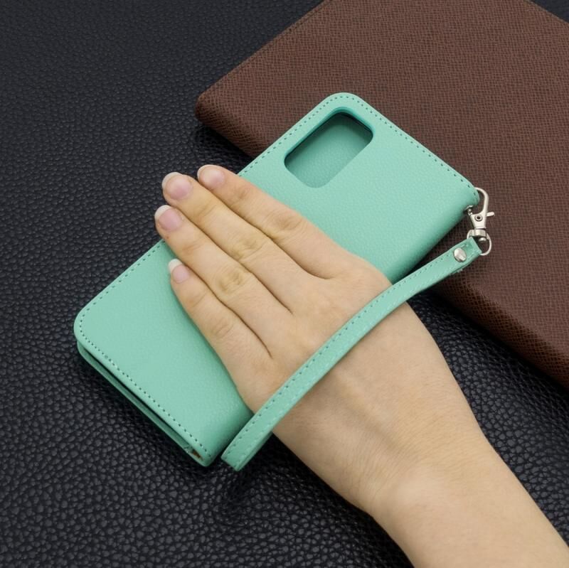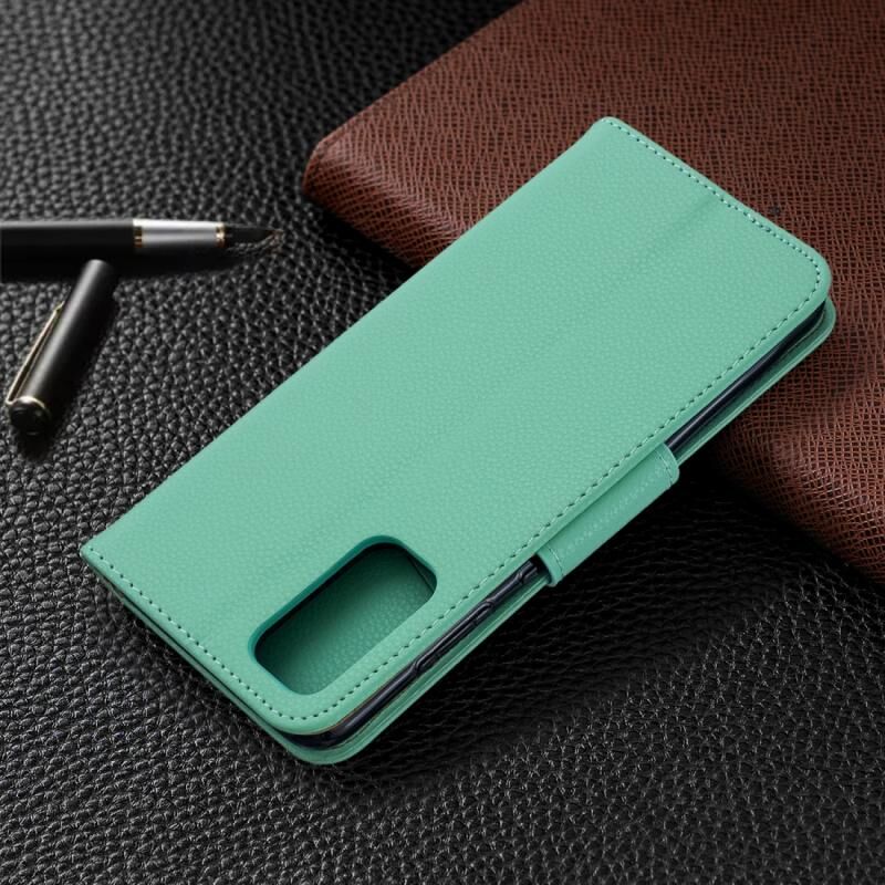 Για Galaxy S20 Litchi υφή καθαρό χρώμα οριζόντια Flip PU δέρμα υπόθεση με θήκη & υποδοχές για κάρτες & πορτοφόλι & κορδόνι (πράσινο)