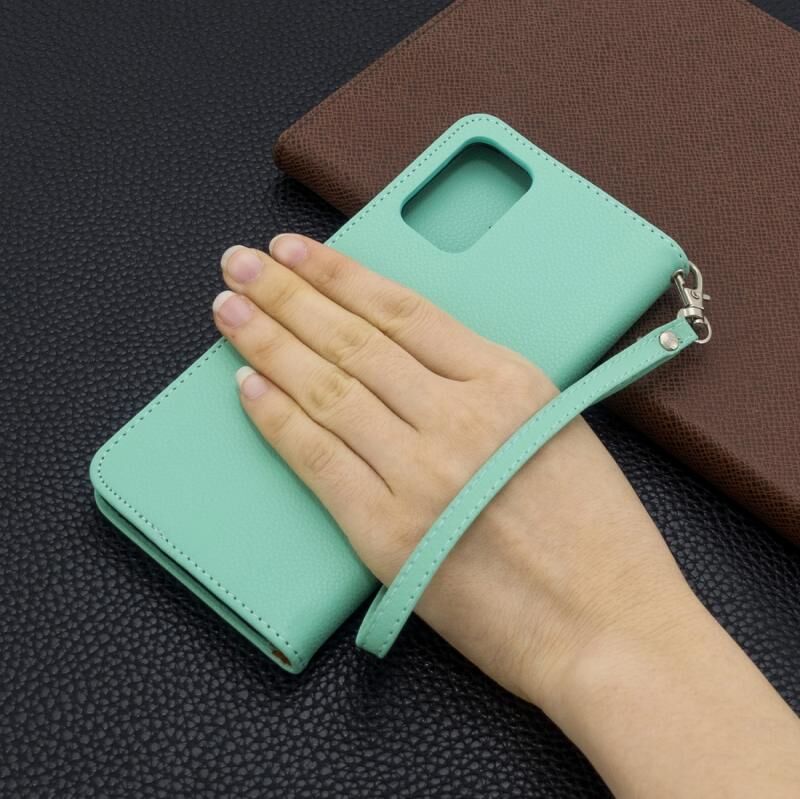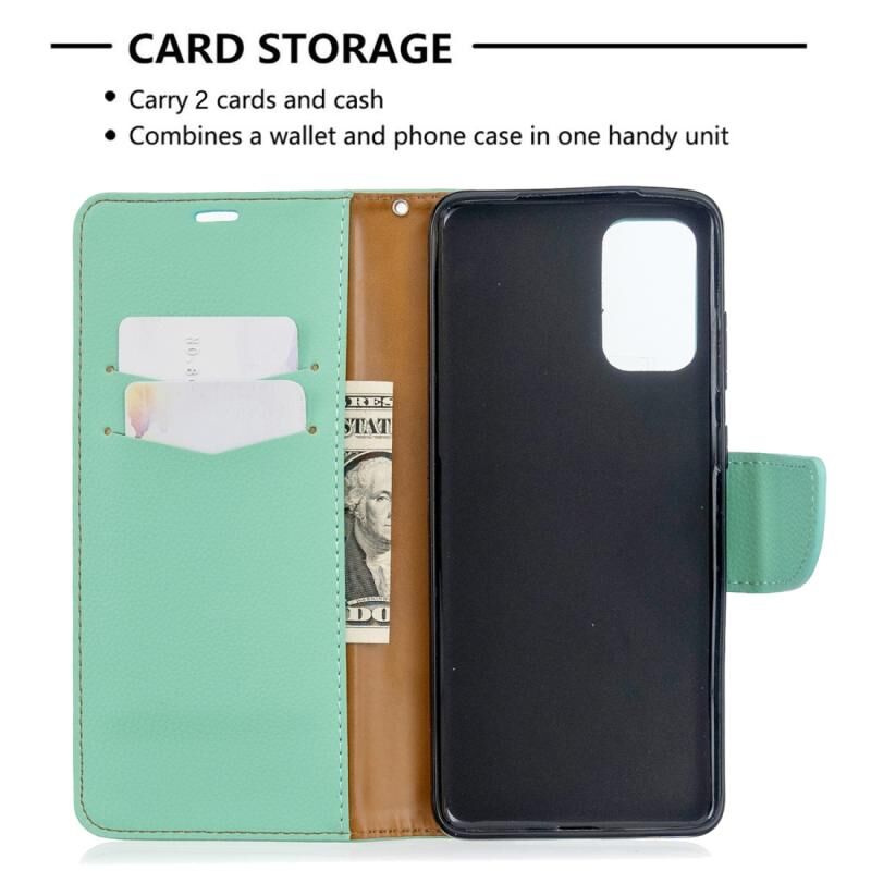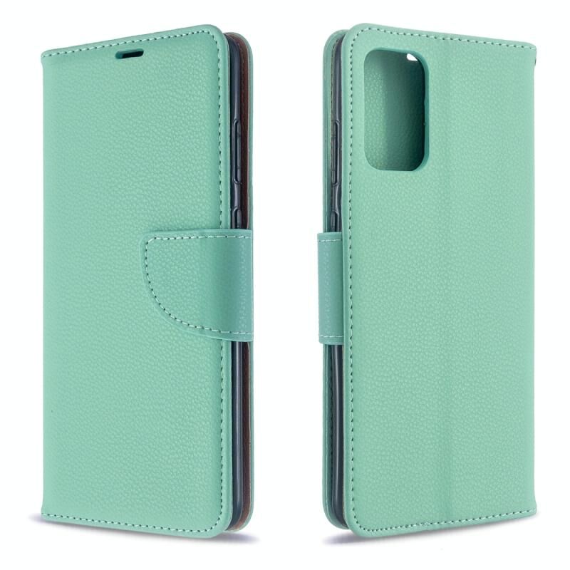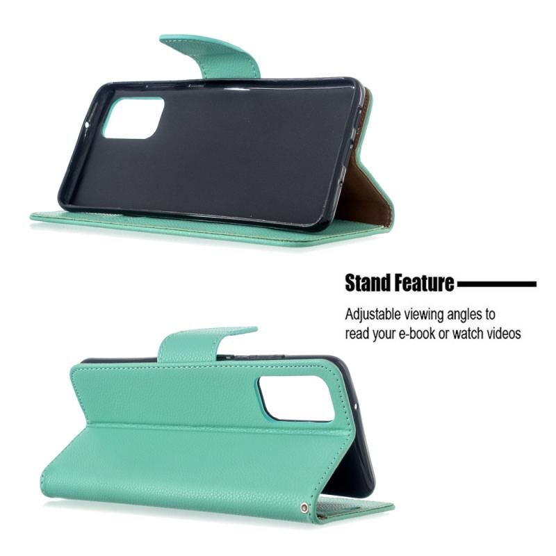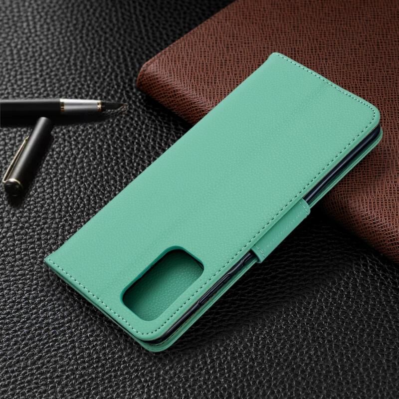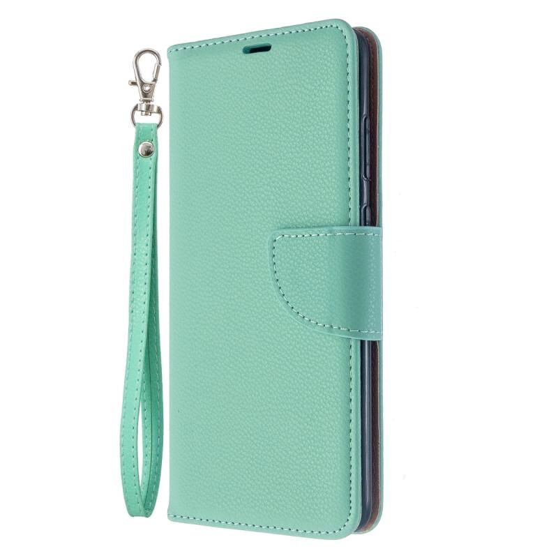 Για Galaxy S20 + Litchi υφή καθαρό χρώμα οριζόντια Flip PU δέρμα υπόθεση με θήκη & υποδοχές για κάρτες & πορτοφόλι & κορδόνι (πράσινο)