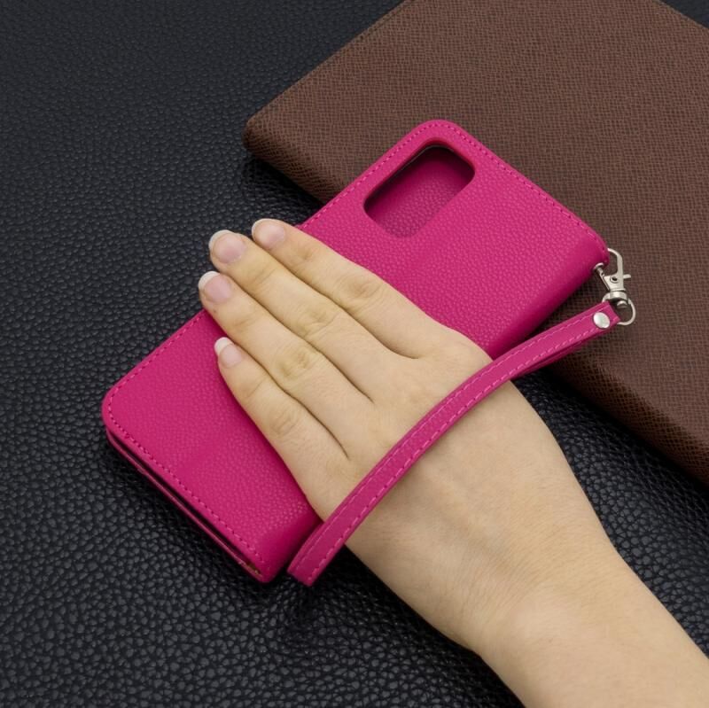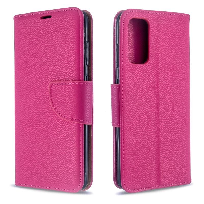 Για Galaxy S20 Litchi Υφή καθαρό χρώμα οριζόντια Flip PU δέρμα υπόθεση με θήκη & υποδοχές για κάρτες & πορτοφόλι & κορδόνι (Rose Red)