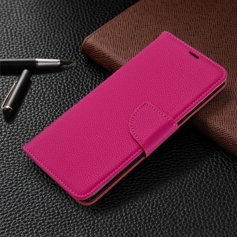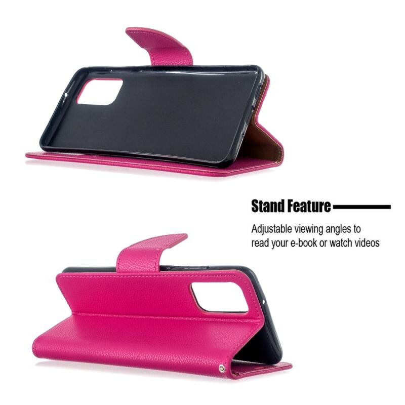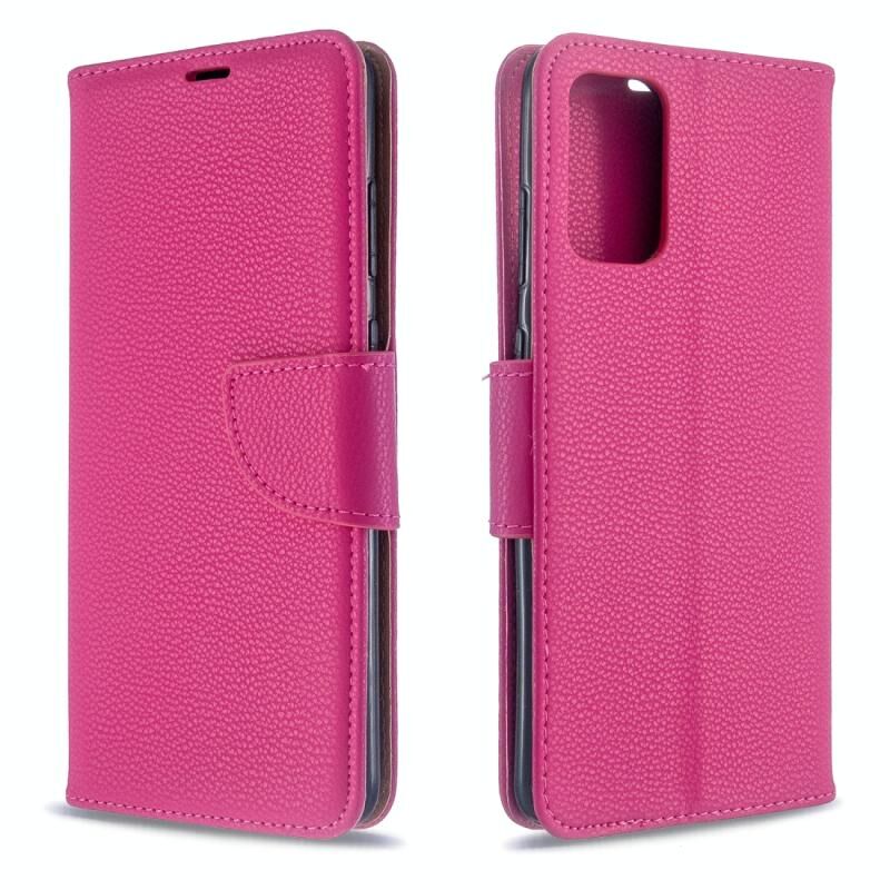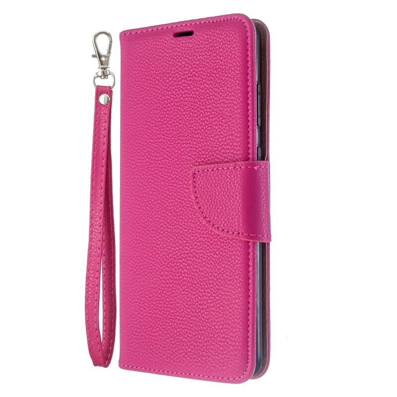 Για Galaxy S20 + Litchi υφή καθαρό χρώμα οριζόντια Flip PU δέρμα υπόθεση με θήκη & υποδοχές για κάρτες & πορτοφόλι & κορδόνι (Ροζέ κόκκινο)