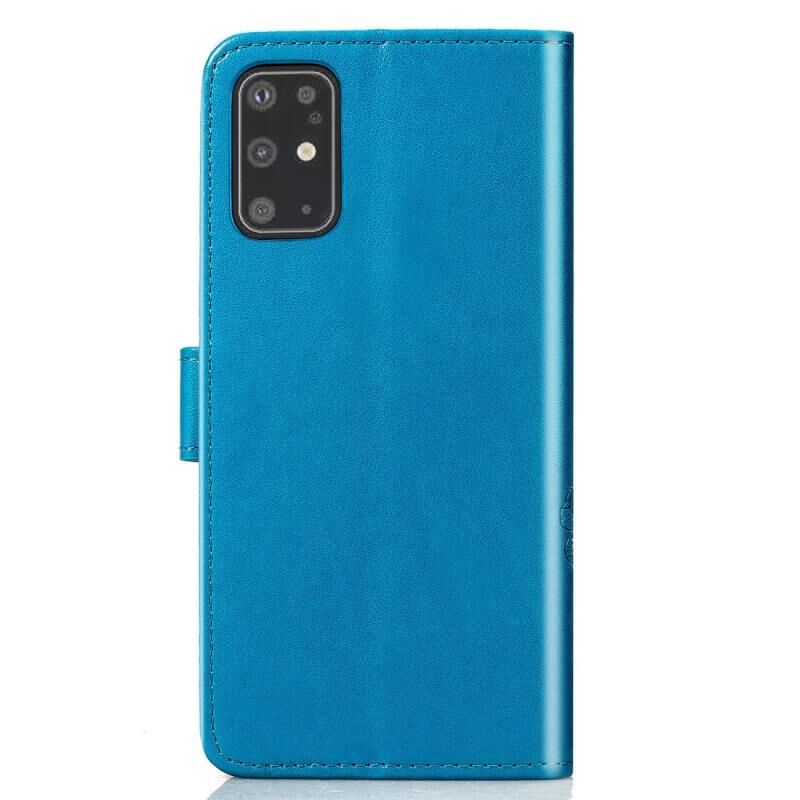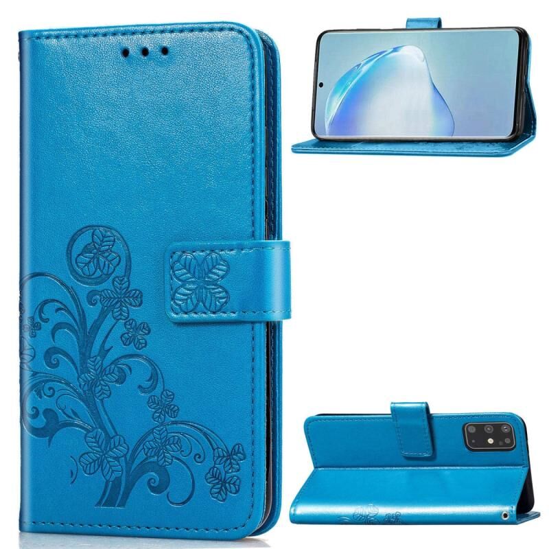 Θήκη δέρματος με σχέδιο πιεσμένων λουλουδιών τριφυλλιού για Galaxy S20+ με βάση στήριξης & υποδοχές καρτών & πορτοφόλι & λουρί χειρός (Μπλε)