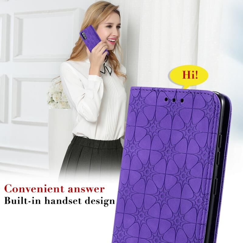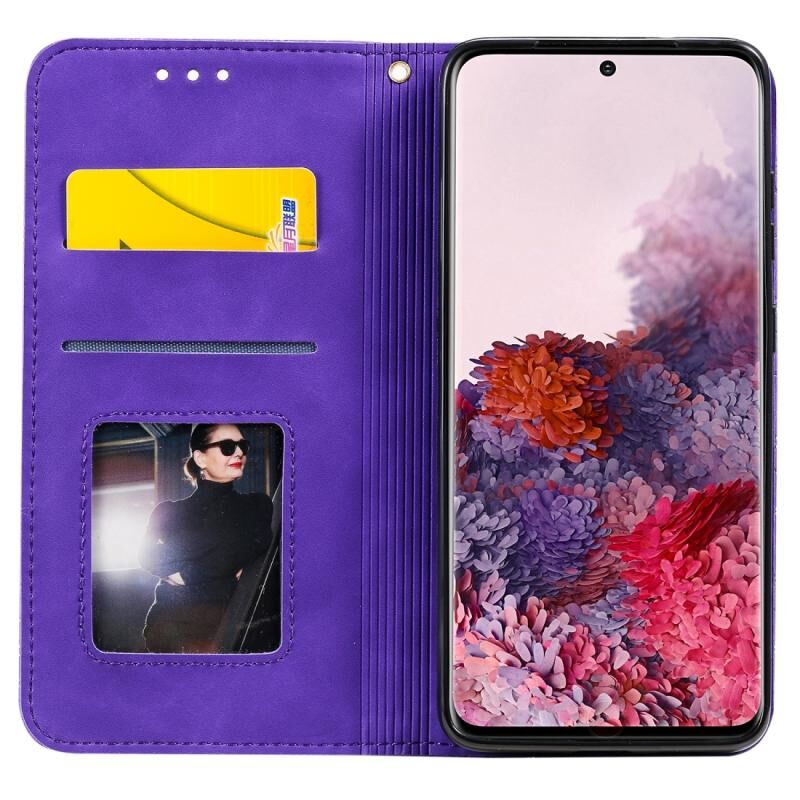 Θήκη δέρματος με μαγνητικό κλείσιμο, οριζόντια, με ανάγλυφο σχέδιο λουλουδιών για Galaxy S20, με βάση και θήκες για κάρτες (Μωβ)