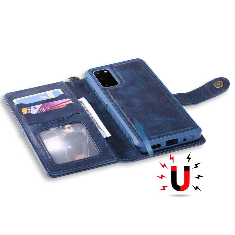 Για Galaxy S20 Πολυλειτουργική αποσπώμενη μαγνητική οριζόντια δερμάτινη θήκη με υποδοχές για κάρτες & θήκη & πορτοφόλι (μπλε)
