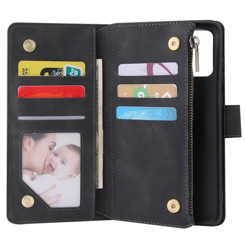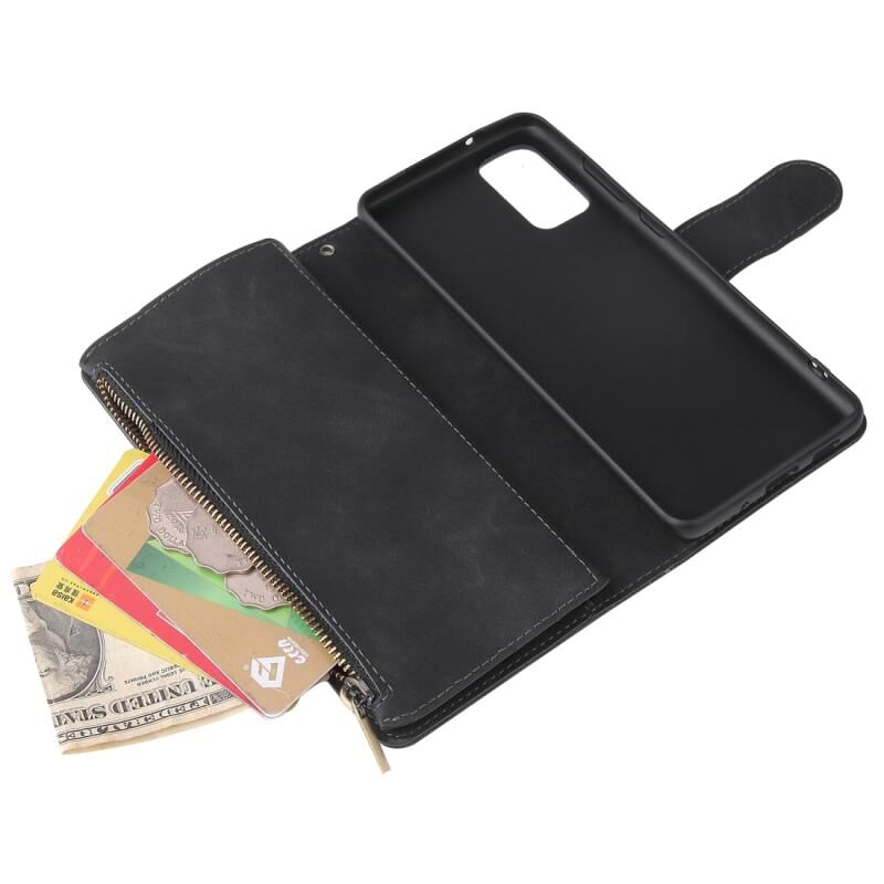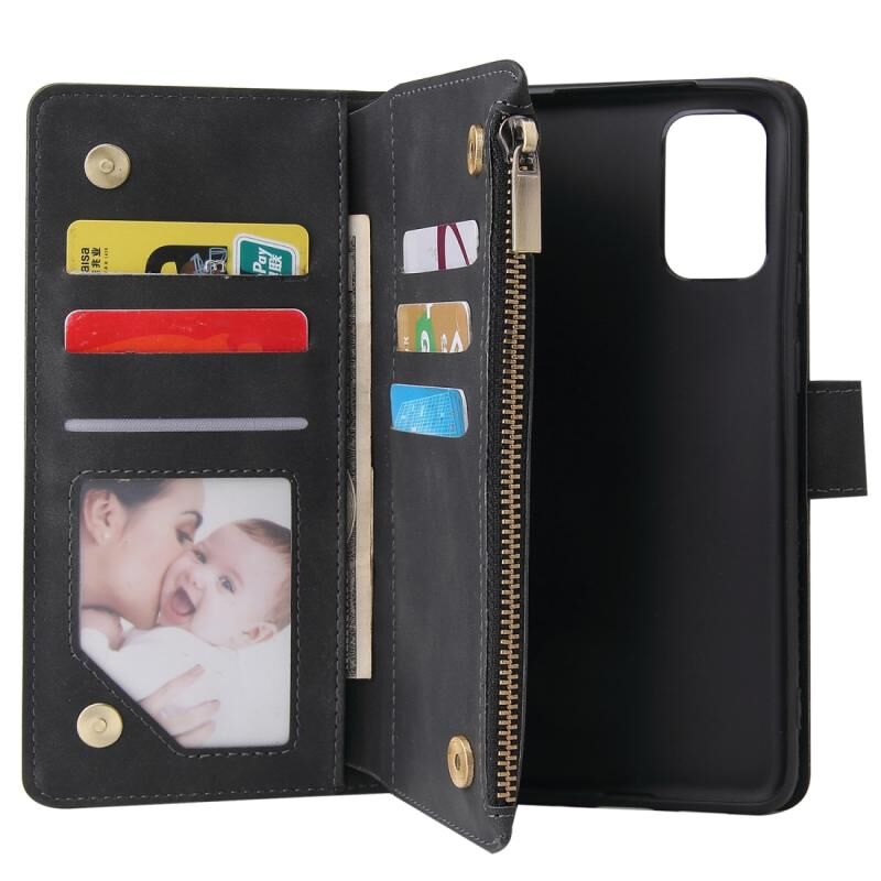 Για το Galaxy S20+ Πολυλειτουργική οριζόντια θήκη από δέρμα, με υποδοχή για κάρτες και θήκη για φερμουάρ, πορτοφόλι με φερμουάρ και κορνίζα φωτογραφιών (Μαύρο)