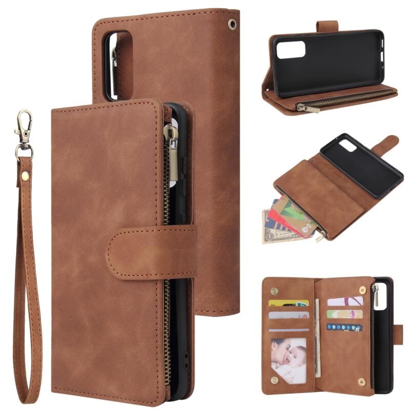 Για το Galaxy S20 Πολυλειτουργική οριζόντια Flip δερμάτινη θήκη, με υποδοχή για κάρτες & θήκη & φερμουάρ πορτοφόλι & κορνίζα φωτογραφιών (καφέ)