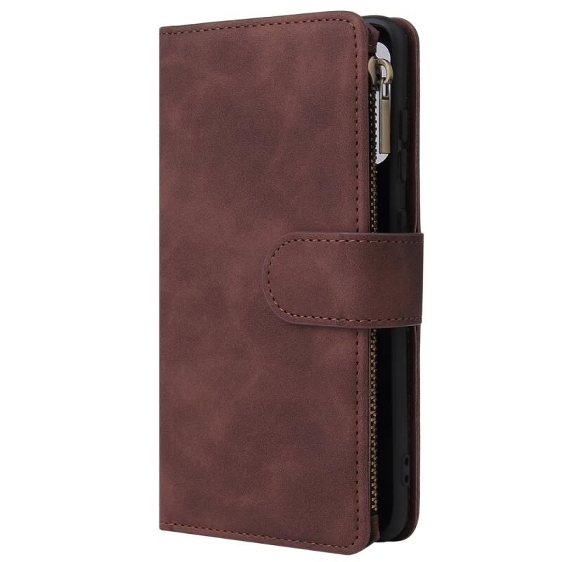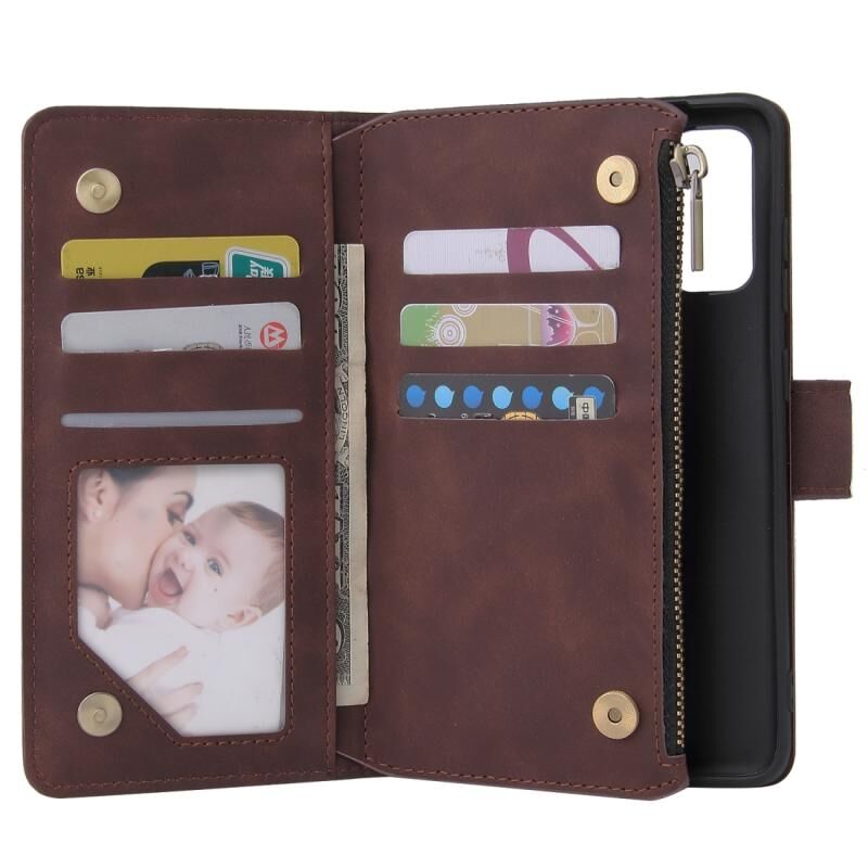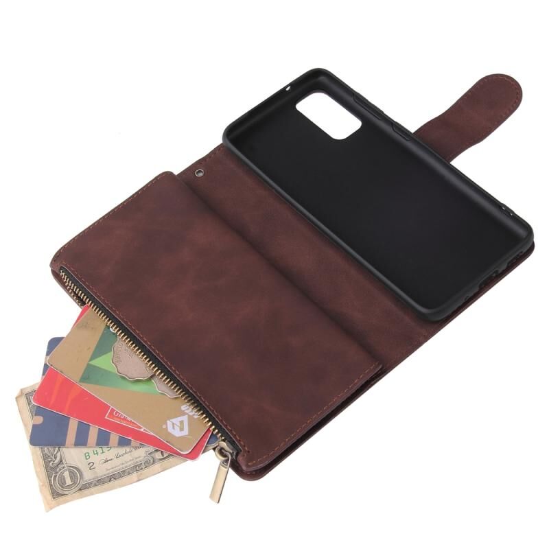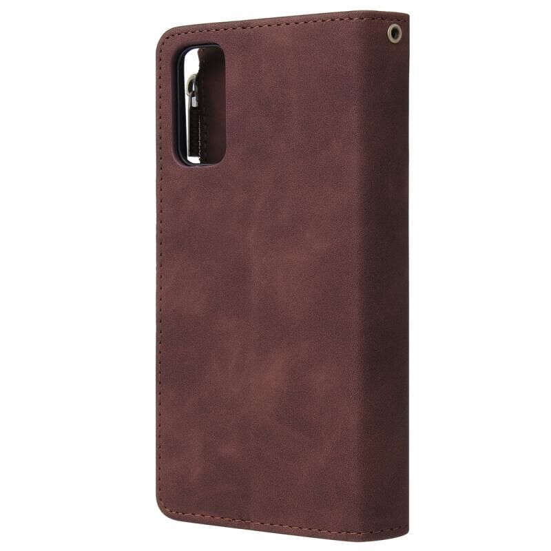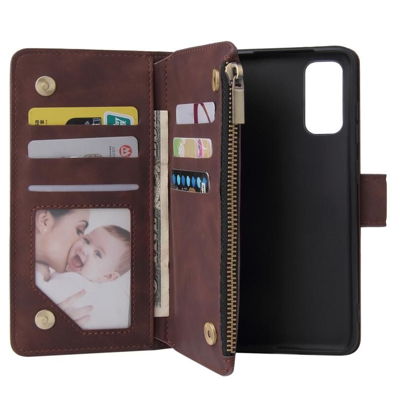 Για το Galaxy S20 Πολυλειτουργική οριζόντια Flip δερμάτινη θήκη, με υποδοχή για κάρτες & θήκη & φερμουάρ πορτοφόλι & κορνίζα φωτογραφιών (Καφές)