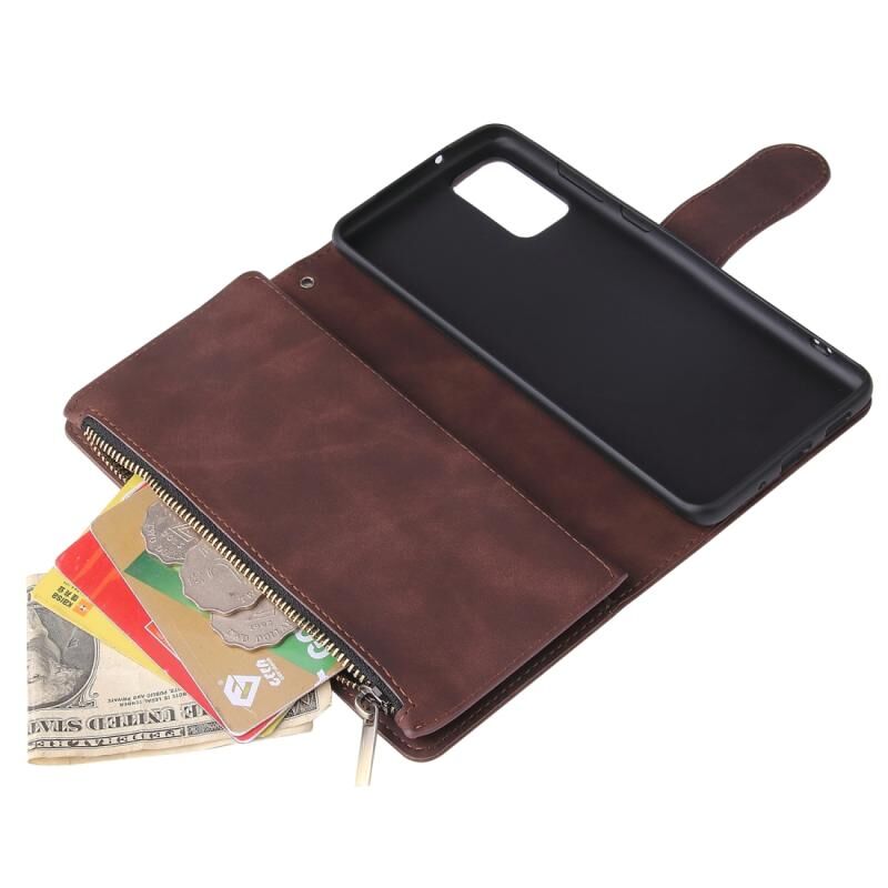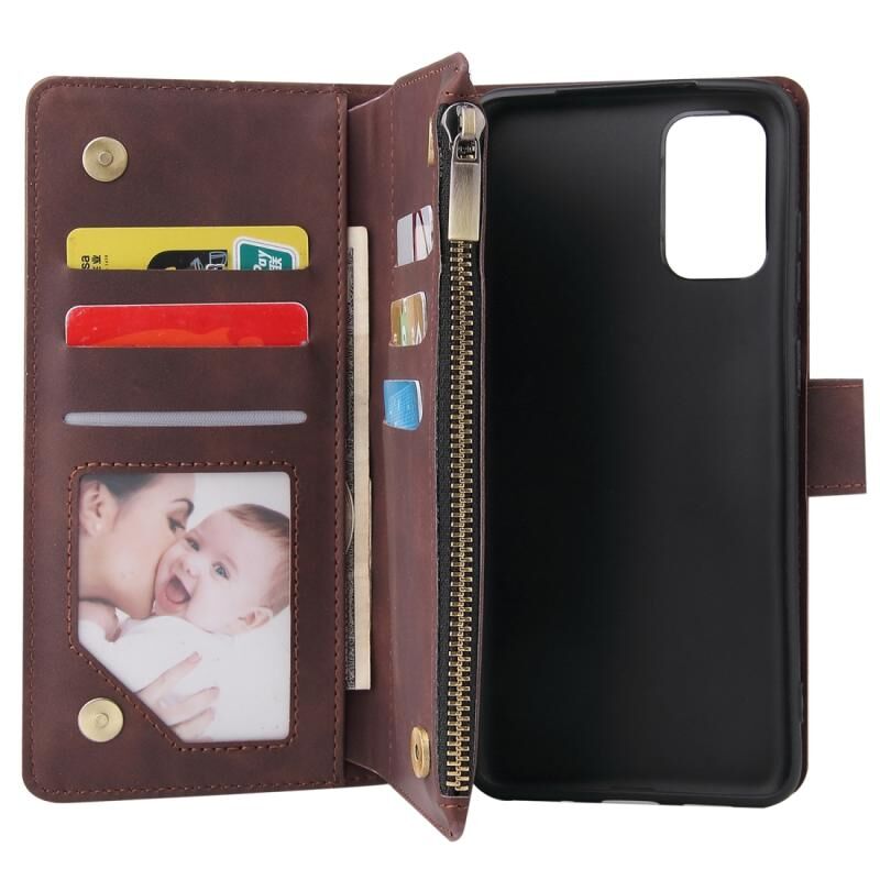 Για το Galaxy S20+ Πολυλειτουργική οριζόντια θήκη από δέρμα, με υποδοχή για κάρτες και θήκη για φερμουάρ, πορτοφόλι με φερμουάρ και κορνίζα φωτογραφιών (Καφές)