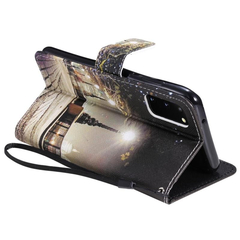 Θήκη δέρματος οριζόντιας αναδίπλωσης για Galaxy S20 με σχέδιο πόλης, με βάση στήριξης, θήκη για κάρτες και κορδόνι.
