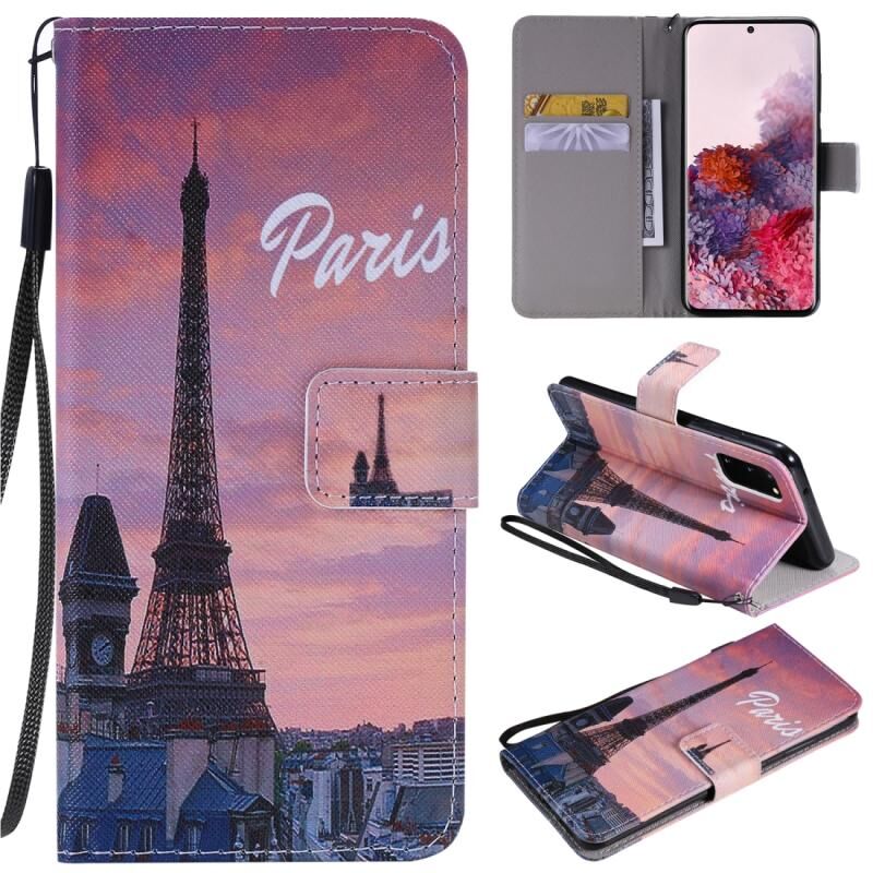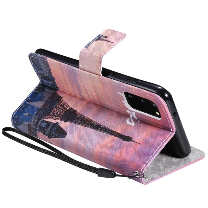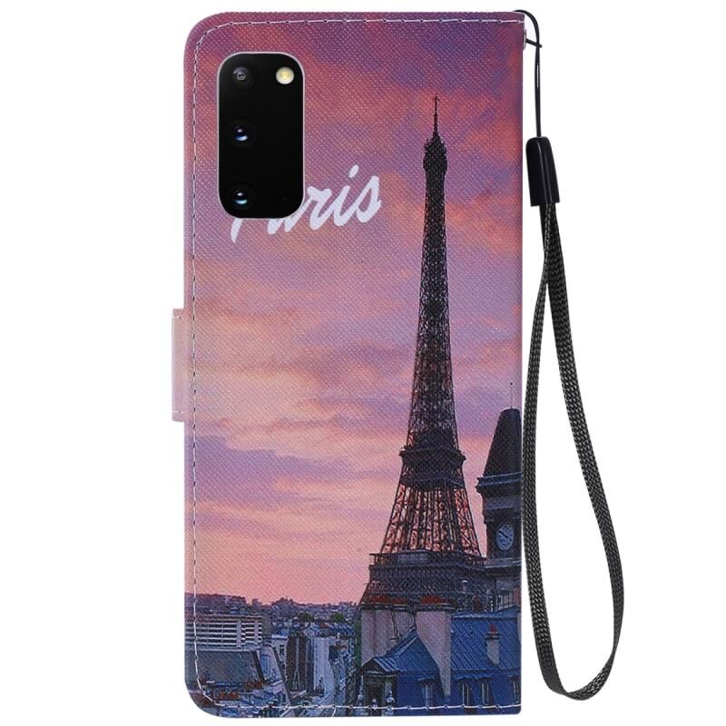 Θήκη δέρματος οριζόντιας αναδίπλωσης για Galaxy S20 με σχέδιο ζωγραφικής, με βάση στήριξης & θήκη καρτών & κορδόνι (Πύργος του Άιφελ)