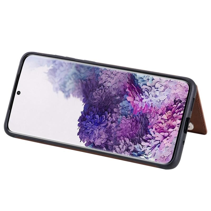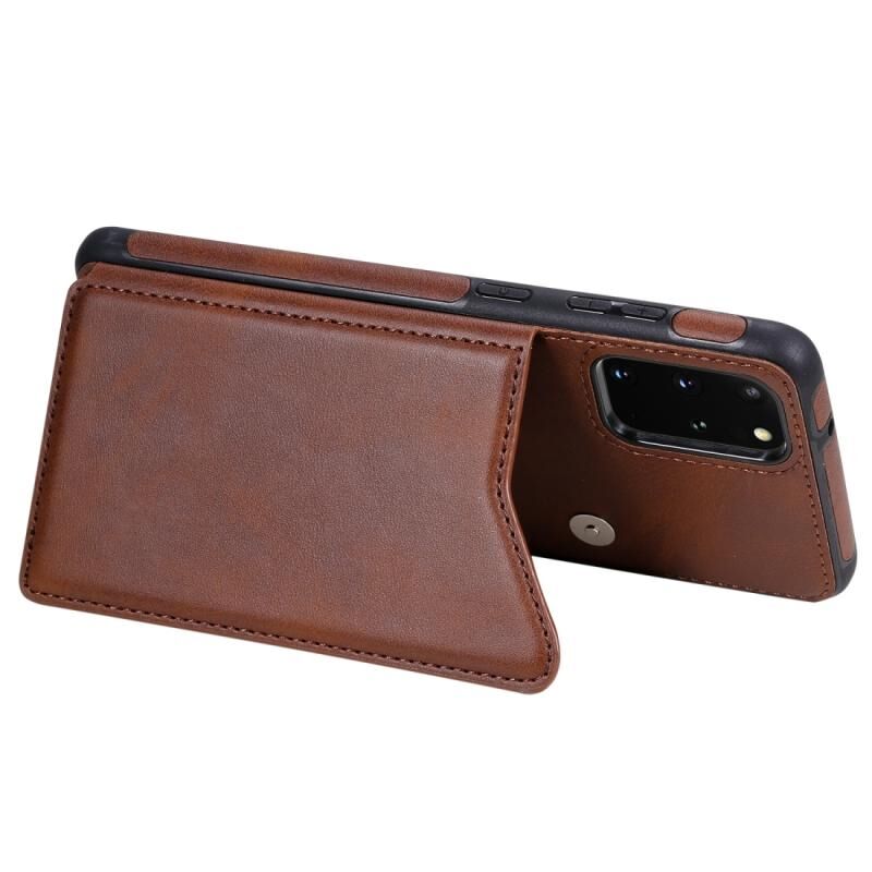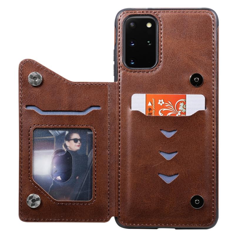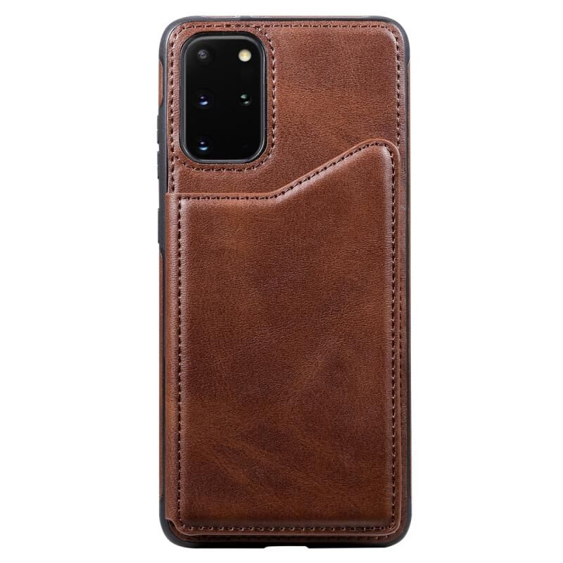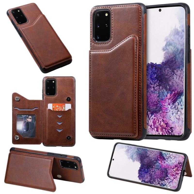 Θήκη δέρματος οριζόντιας αναδίπλωσης με υφή μοσχαριού για Galaxy S20 Plus με βάση & υποδοχές καρτών & πλαίσιο (Καφέ)