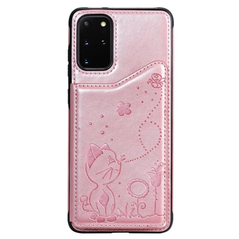 Θήκη προστασίας με ανάγλυφο σχέδιο Cat Bee για Galaxy S20 Plus, ανθεκτική στις κρούσεις, με θήκες για κάρτες & κορνίζα φωτογραφιών (Ροζ χρυσός)