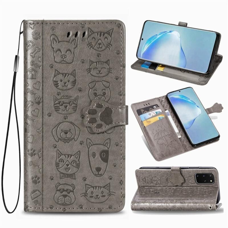 Θήκη δέρματος οριζόντιας αναδίπλωσης με ανάγλυφα σχέδια χαριτωμένων γάτας και σκύλου για Galaxy S20 Plus, με βάση στήριξης / υποδοχή κάρτας / πορτοφόλι / κορδόνι (Κίτρινο)