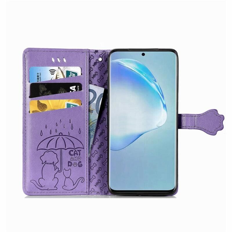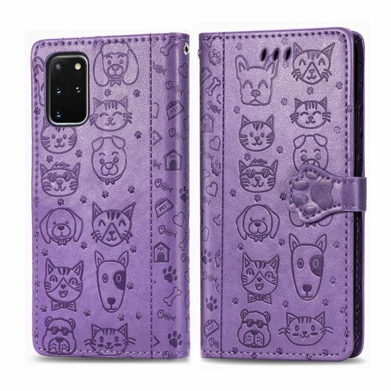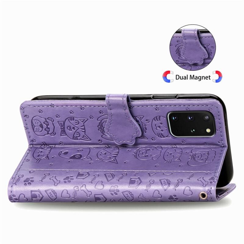 Θήκη δέρματος οριζόντιας αναδίπλωσης με ανάγλυφα σχέδια χαριτωμένων γάτας και σκύλου για Galaxy S20 Plus, με βάση στήριξης / υποδοχή κάρτας / πορτοφόλι / κορδόνι (Κίτρινο)