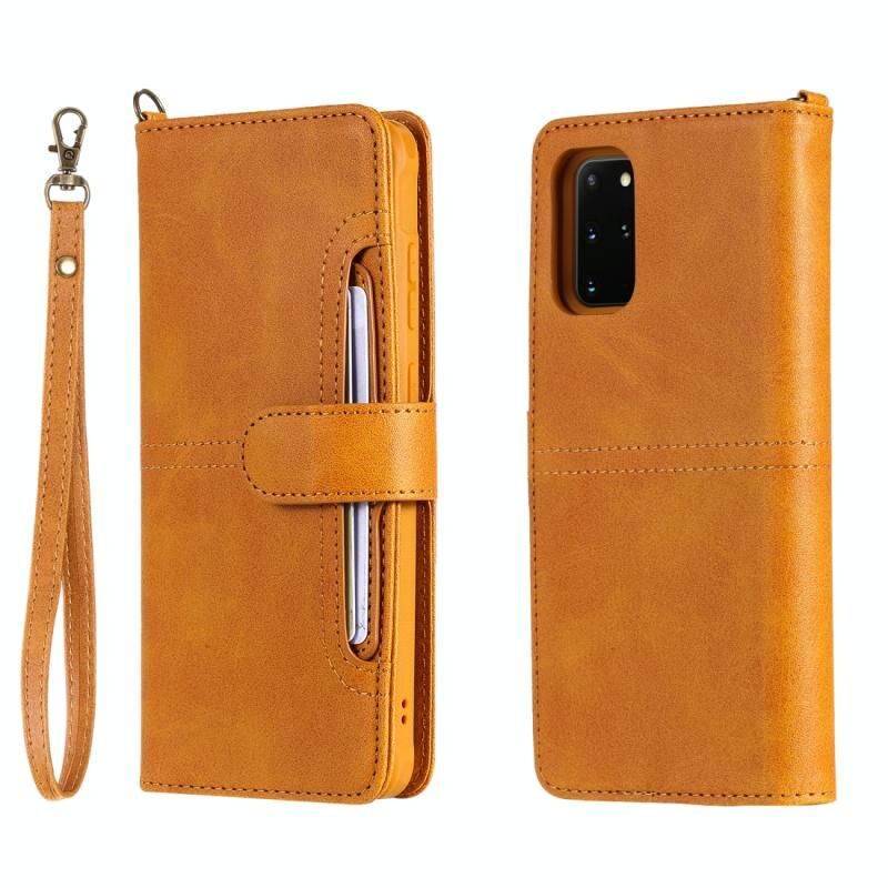 Για Galaxy S20 Plus Πολυλειτουργική αποσπώμενη μαγνητική οριζόντια δερμάτινη θήκη με υποδοχές για κάρτες & θήκη & πορτοφόλι (Καφέ)