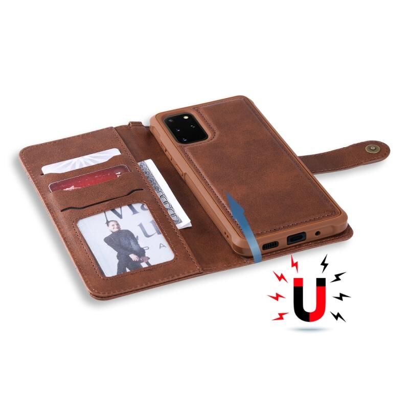 Για Galaxy S20 Plus Πολυλειτουργική αποσπώμενη μαγνητική οριζόντια δερμάτινη θήκη με υποδοχές για κάρτες & θήκη & πορτοφόλι (Καφέ)