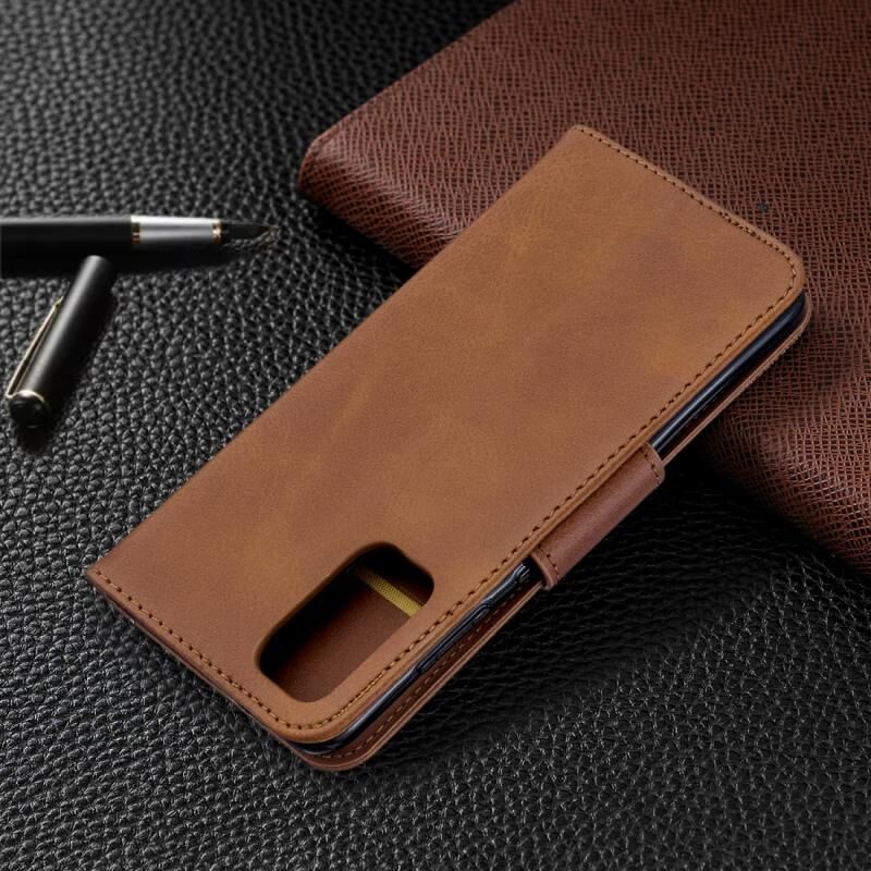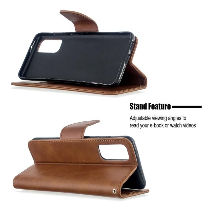 Για Galaxy S20 Ρετρό Lambskin Υφή καθαρό χρώμα οριζόντια Flip PU δέρμα υπόθεση με θήκη & υποδοχές για κάρτες & πορτοφόλι & κορδόνι (καφέ)