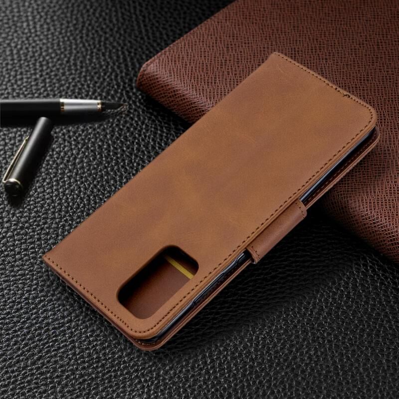Για Galaxy S20+ Ρετρό Lambskin υφή καθαρό χρώμα οριζόντια Flip PU δέρμα υπόθεση με θήκη & υποδοχές για κάρτες & πορτοφόλι & κορδόνι (Καφέ)