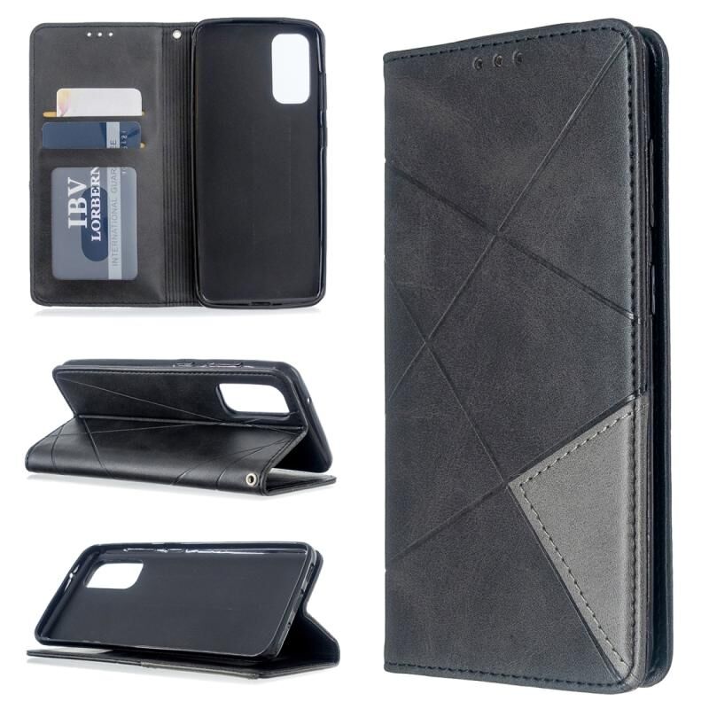 Για Galaxy S20 Rhombus υφή Οριζόντια Flip μαγνητική δερμάτινη θήκη με θήκη & υποδοχές για κάρτες (μαύρο)