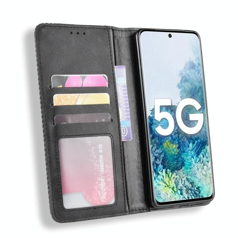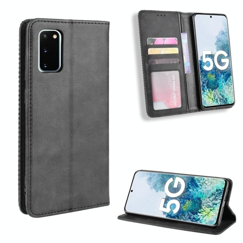 Για Galaxy S20 / S20 5G Μαγνητική πόρπη Ρετρό Crazy Horse Υφή Οριζόντια Flip δερμάτινη θήκη με θήκη & υποδοχές για κάρτες & πλαίσιο φωτογραφιών (Μαύρο)