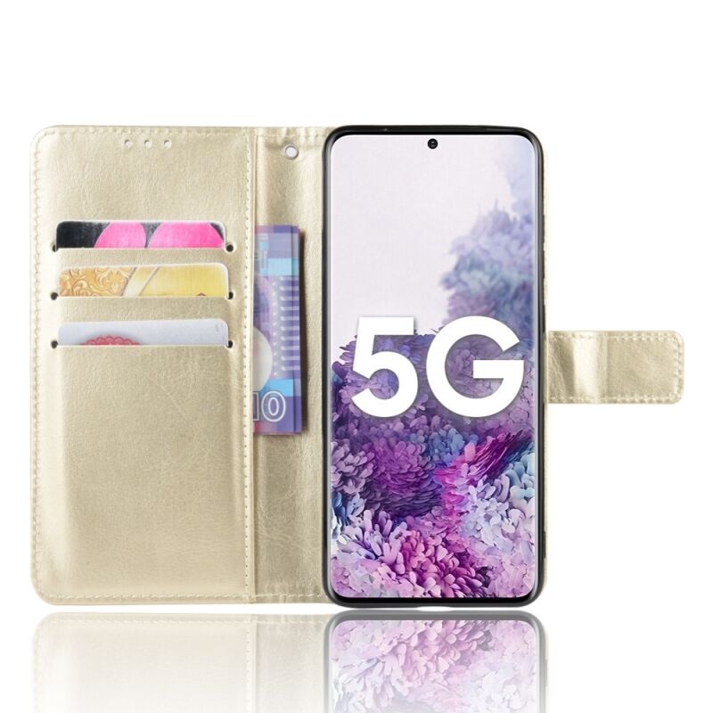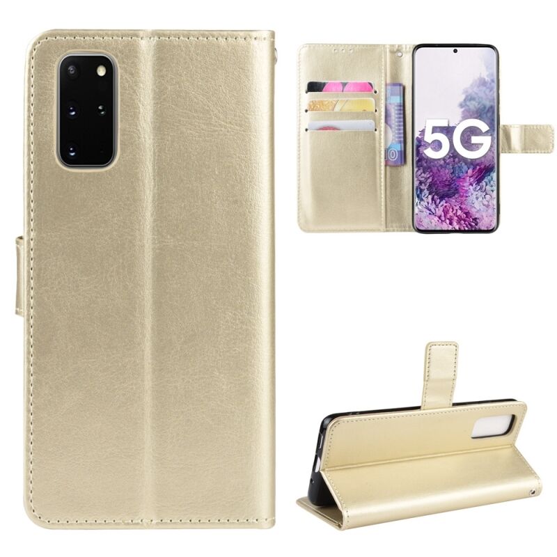Για Galaxy S20+/S20+5G Ρετρό τρελό άλογο υφή οριζόντια Flip δερμάτινη θήκη με θήκη & υποδοχές για κάρτες & πλαίσιο φωτογραφιών (χρυσό)