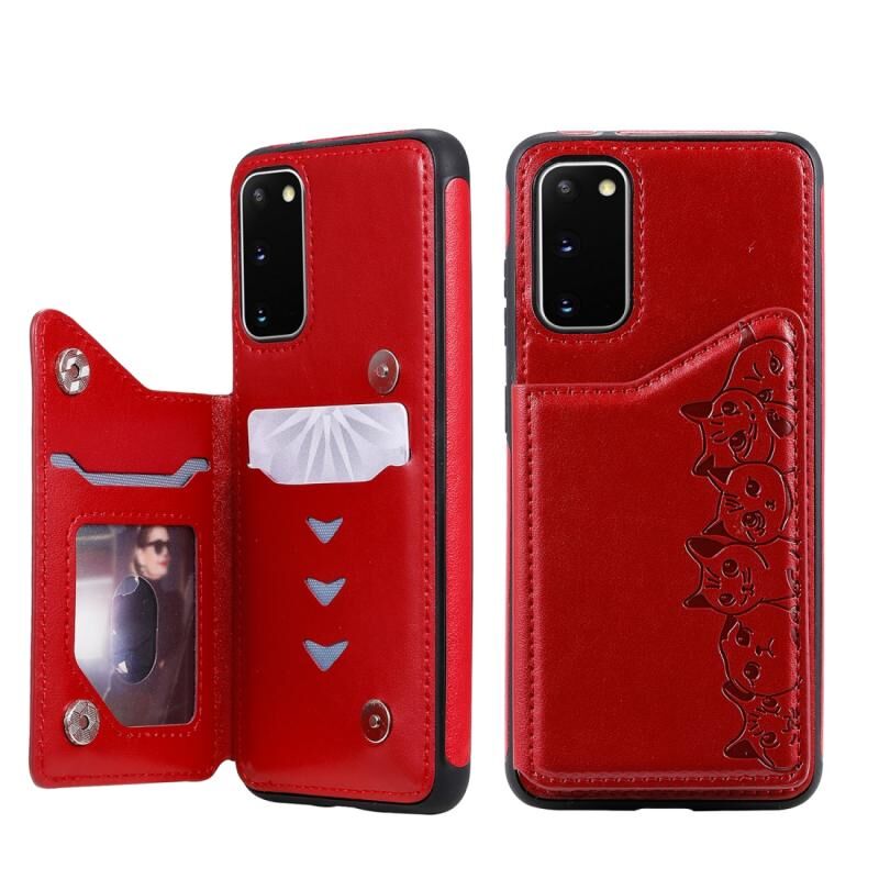 Θήκη προστασίας με ανάγλυφο σχέδιο έξι γατών, αντικραδασμική για Galaxy S20, με θήκες για κάρτες & κορνίζα φωτογραφιών (Μαύρο)