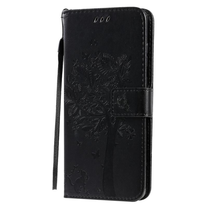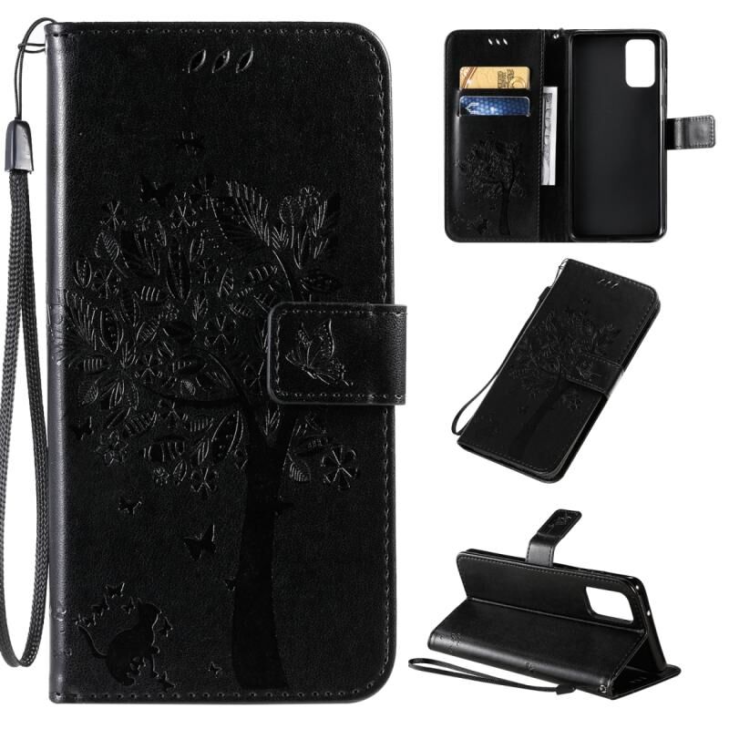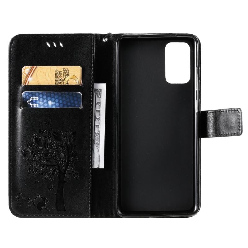 Θήκη για Galaxy S20+ με σχέδιο Δέντρου & Γάτας, εκτύπωση με πίεση, οριζόντια, από δερματίνη PU με βάση στήριξης & θήκες καρτών & πορτοφόλι & κορδόνι (Ανοιχτό Μωβ)