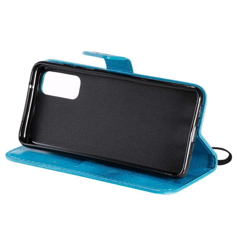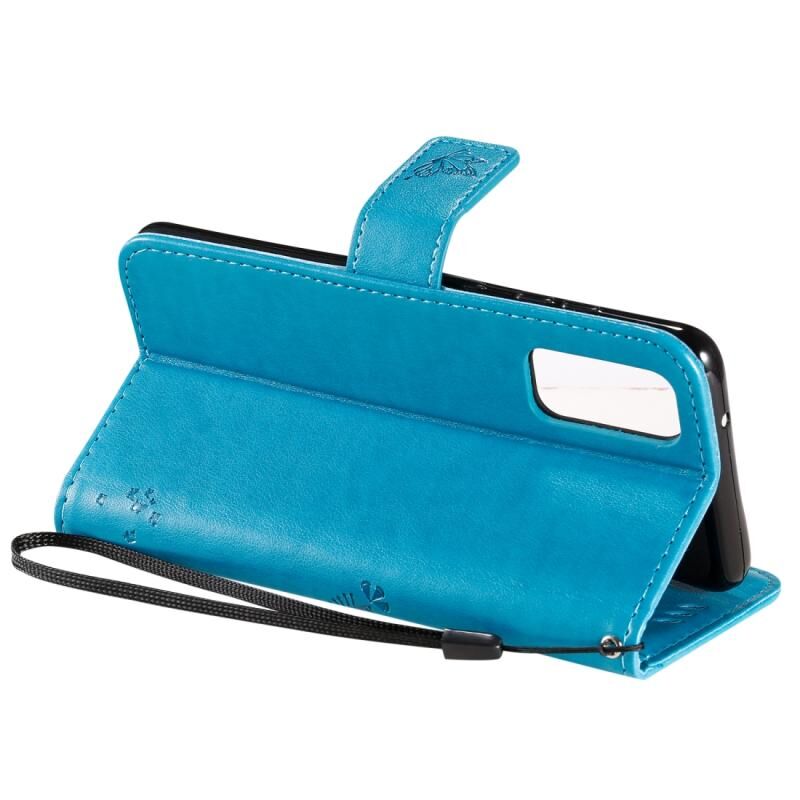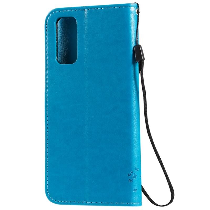 Θήκη για Galaxy S20 με σχέδιο δέντρου & γάτας, με ανάγλυφη εκτύπωση, οριζόντια, από δερματίνη PU με βάση & θήκες για κάρτες & πορτοφόλι & κορδόνι (Ανοιχτό Μωβ)