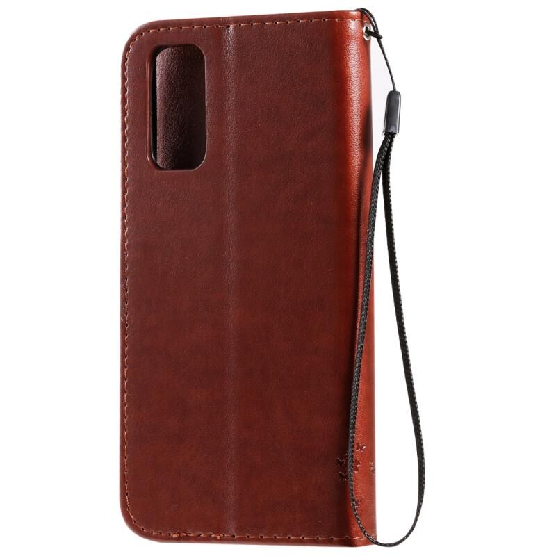 Θήκη για Galaxy S20 με σχέδιο δέντρου & γάτας, εκτύπωση με πίεση, οριζόντια αναδιπλούμενη από δερματίνη PU με βάση & θήκες για κάρτες & πορτοφόλι & κορδόνι (Καφέ)